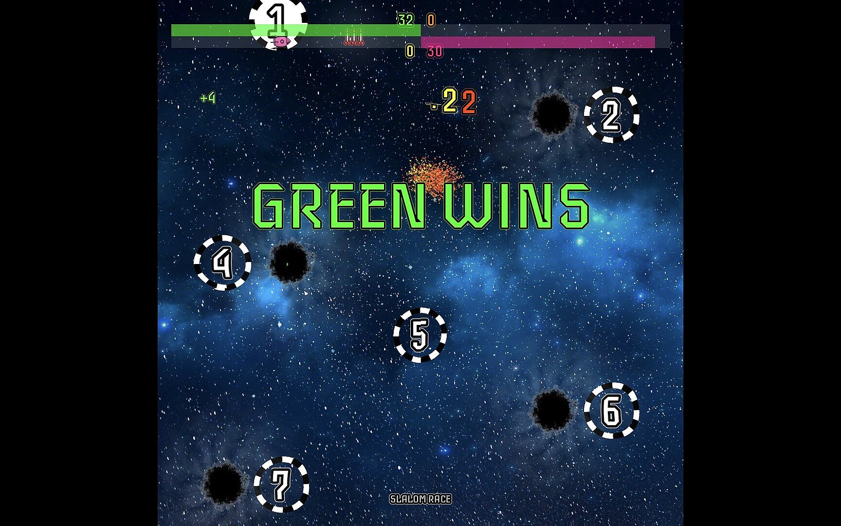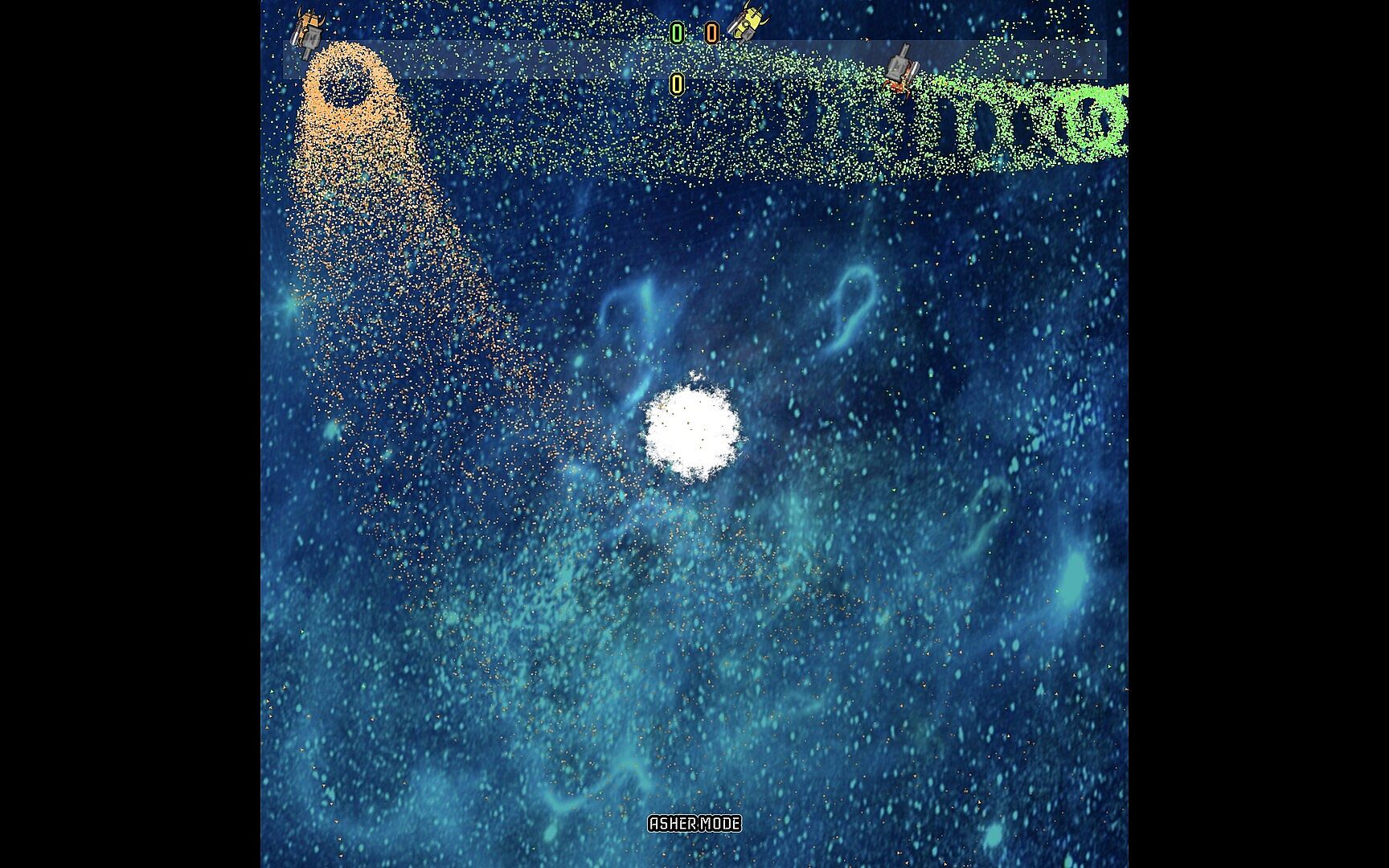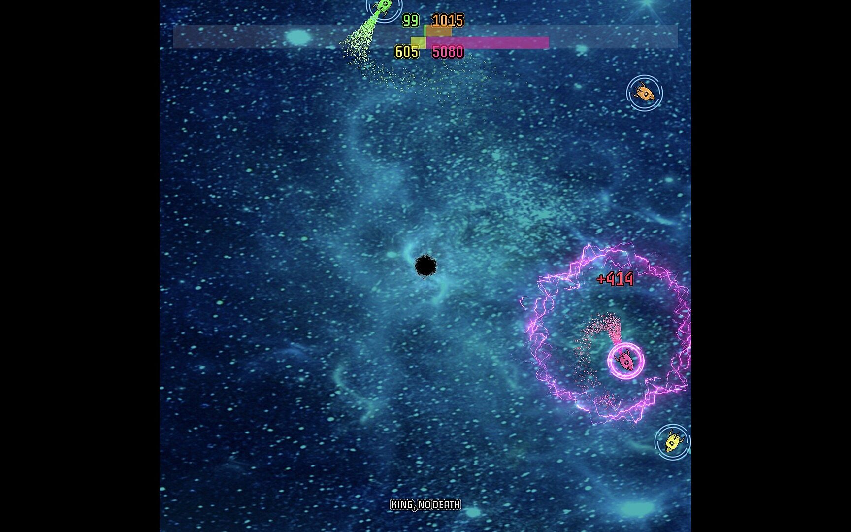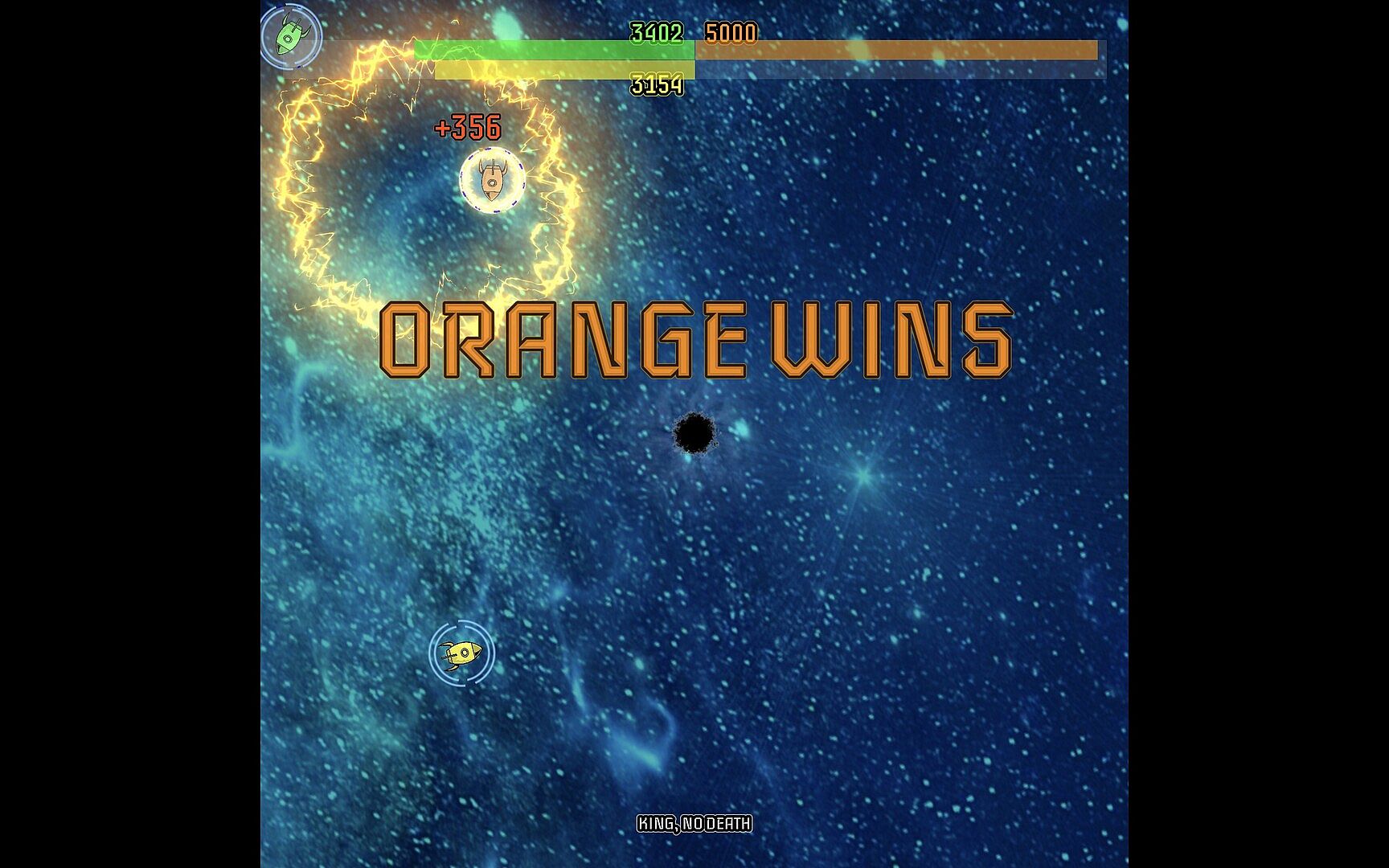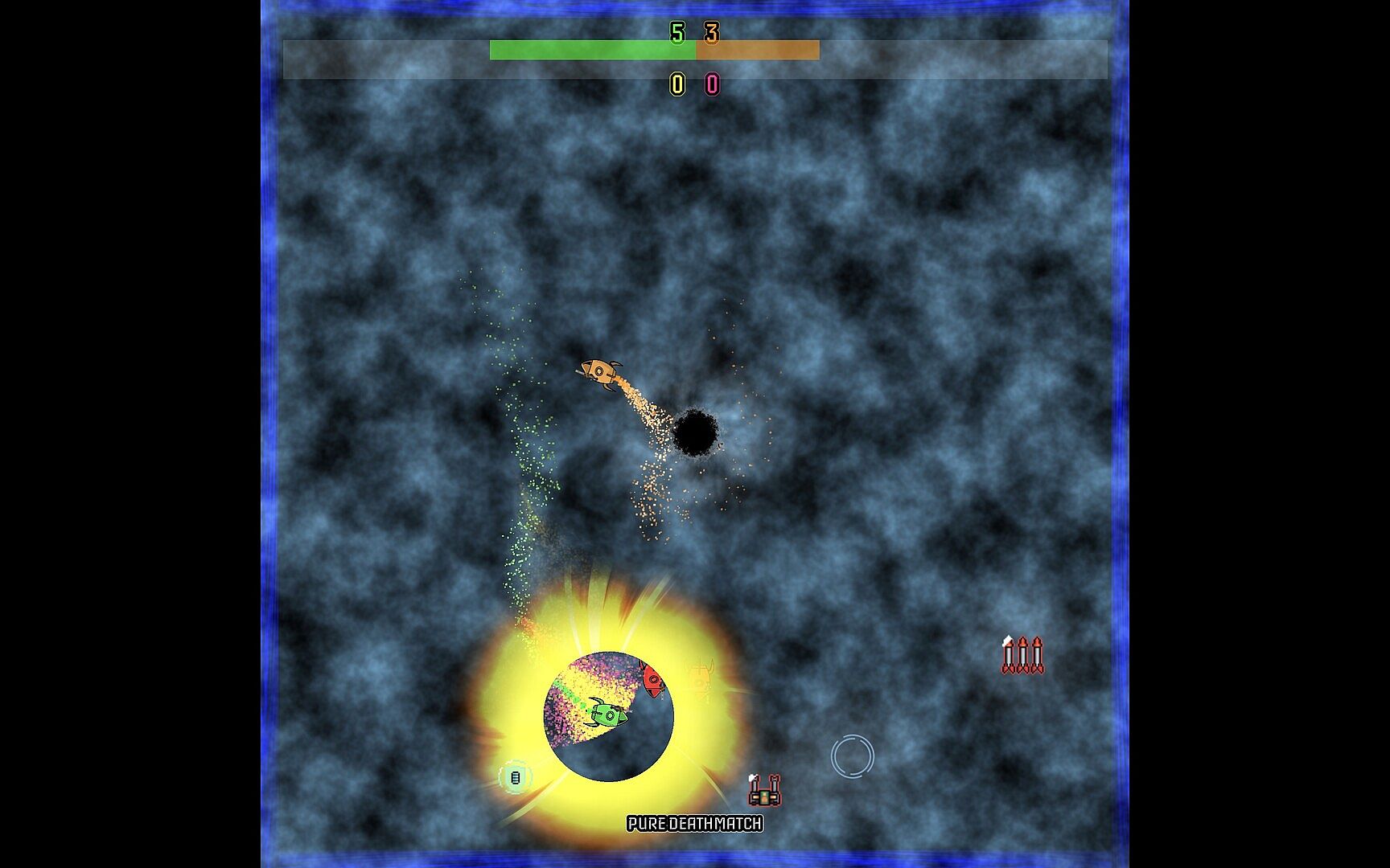 Deathmatch - kill your enemies, but keep an eye out for powerups that can change the balance of power. Be ready to use the black hole as a slingshot to get you to a powerup before anyone else, but don't fling yourself into that electrified wall!