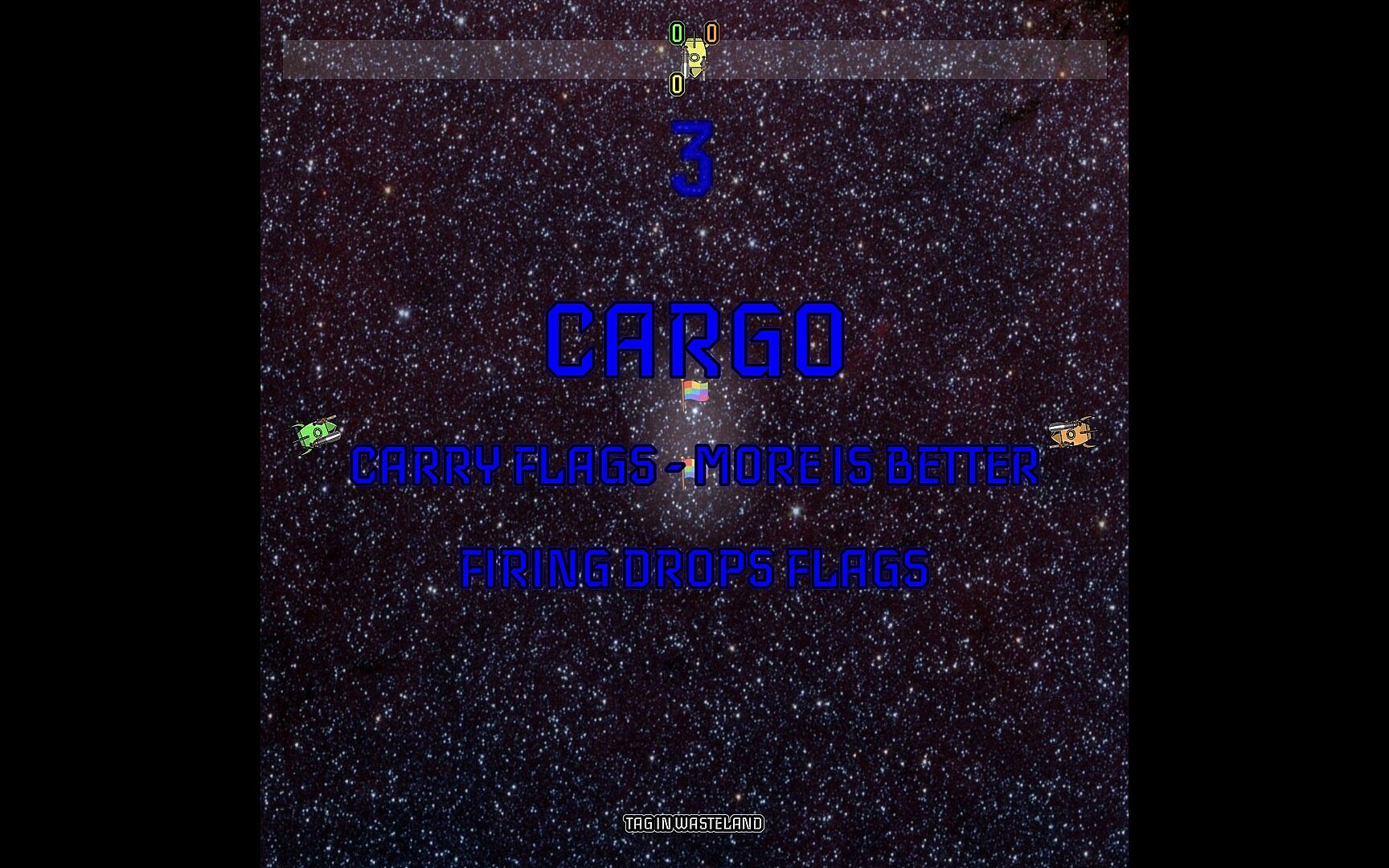 Cargo - Earn points as long as you are carrying one or more flags. But watch out - holding a flag disables your guns and weakens your engines. Maybe let your opponent pick up the flag first, then come in for the kill and carry the flag away as fast as you can!