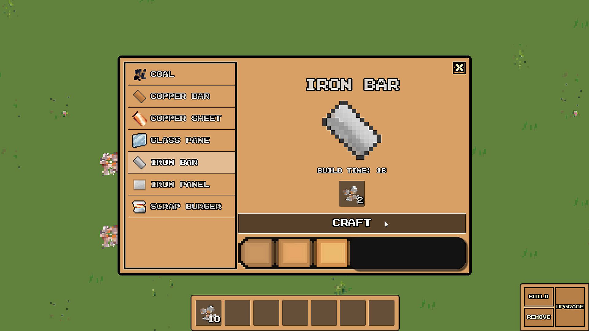 A short and sweet escape automation meant to scratch that factory itch. Meant to be played in one sitting of 2-3 hours (no game saves). Crash land from space into a randomly generated world with 4 basic resources and then gather, upgrade, and construct a factory to build your spacecraft back up from scratch and escape. Meant to be played in one sitting, you got one try... literally  (⊙_⊙')