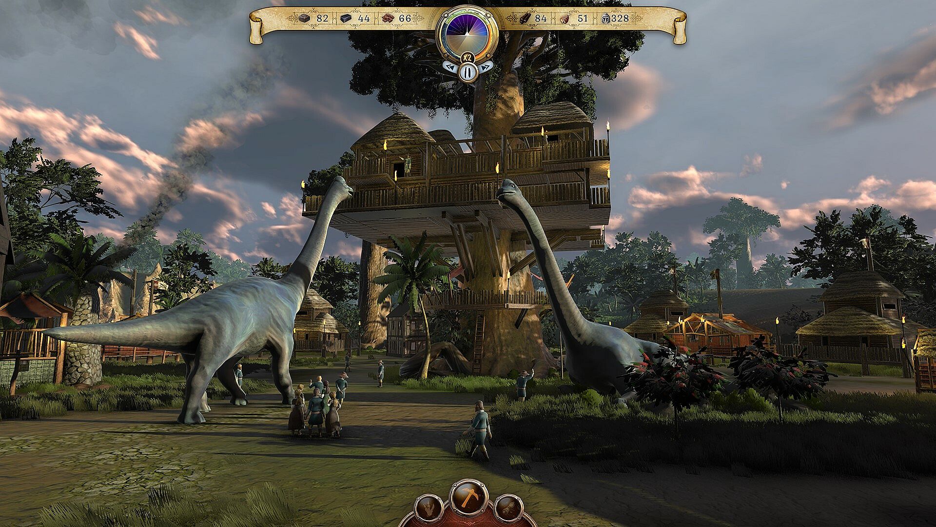 Lead your colonists and make impactful choices to form a society with new laws and politics, which will have a lasting impact on your village as you work to survive. Will you try to hold to the ways of your homeland to maintain a sense of civilization, or will you devolve to your primitive ancestry and brutal ways of life. Keeping the morale of your villagers high as they fill their days with hard labor and exposure to fierce dinosaurs is critical. Listen to requests from your people, punish those who get out of line, and choose how your precious resources are used.SURVIVAL IS KEY