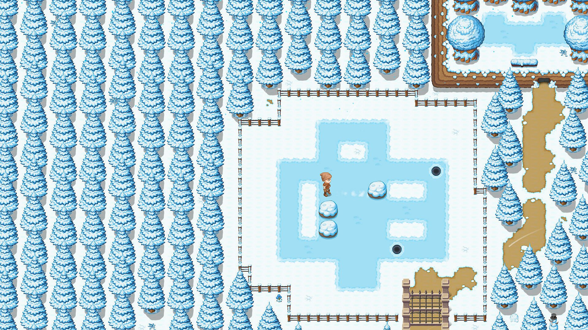 - Slide and drop rocks into holes in the ice to unlock gates and open the exit!