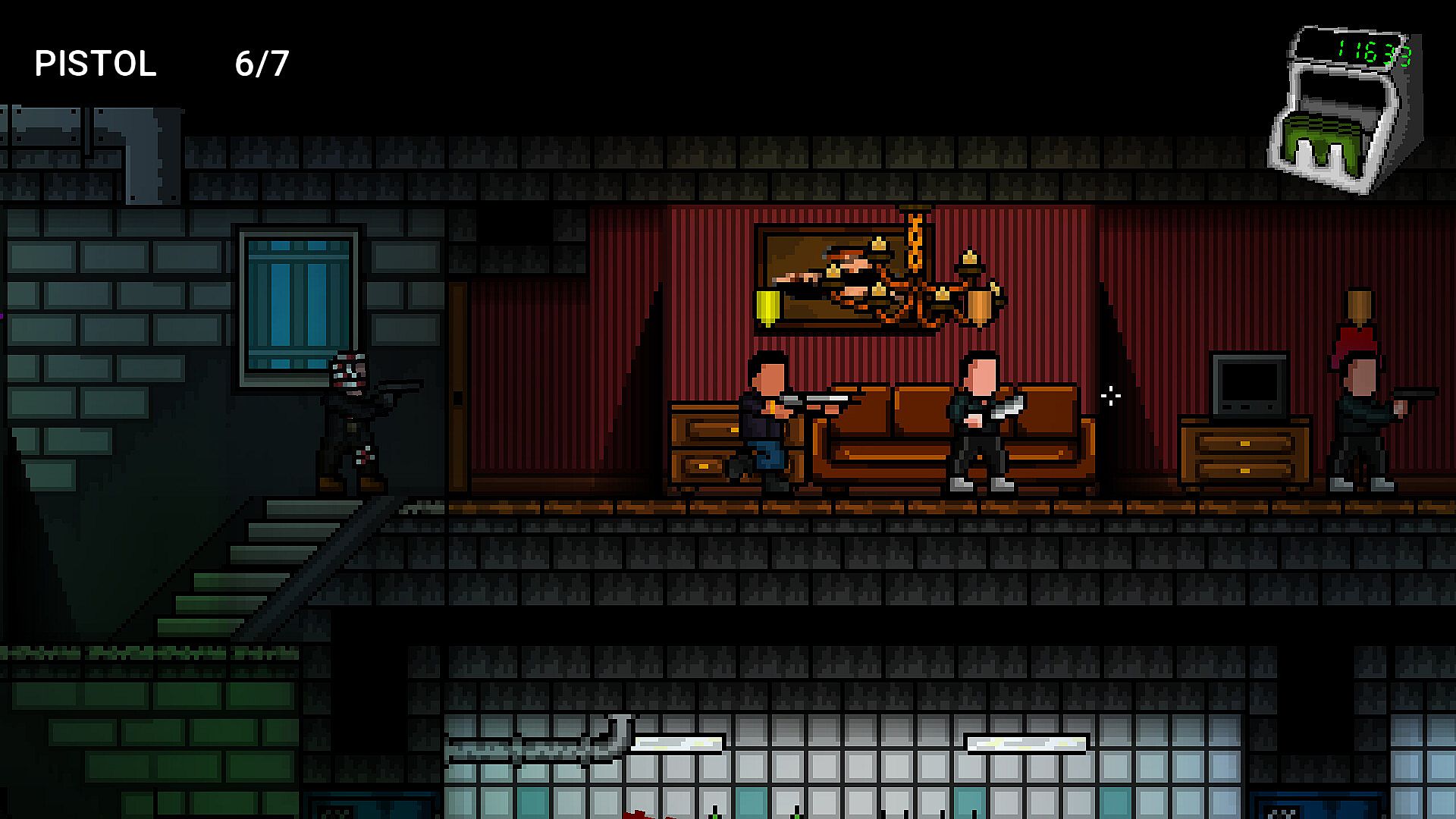 Crime pays. SHLEMO is a dynamic, brutal, dark 2D shooter with a wide range of weapons and the ability to use the environment to your advantage.