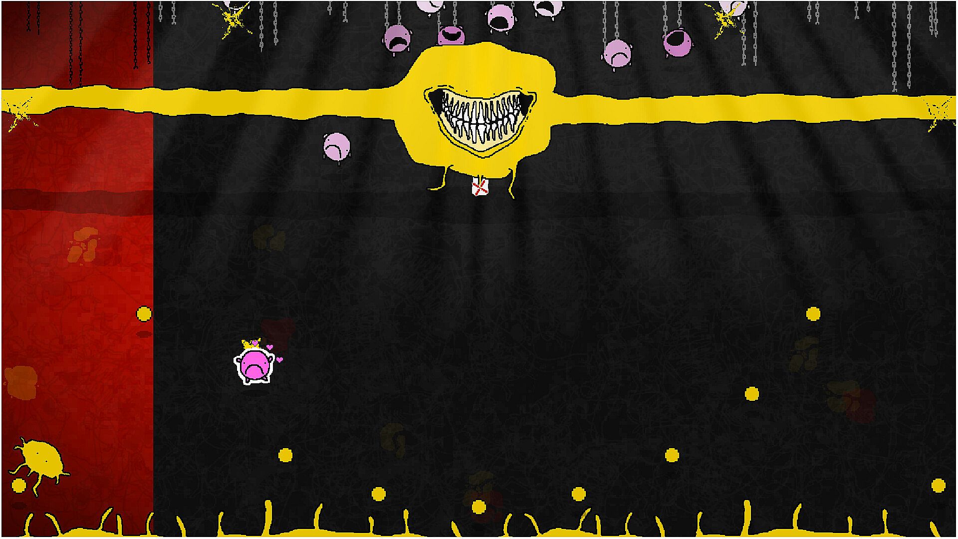 Shmooblin Blaster is a fast-paced bullet hell boss rush where you fight grotesque superbosses. Try to blast these nightmarish titans in their shifting weakpoints, while trying to dodge their increasingly desperate attacks to ultimately rescue your chained kin hanging above the battlefield. Each boss is a surreal, living sculpture with its own attack patterns and personality.