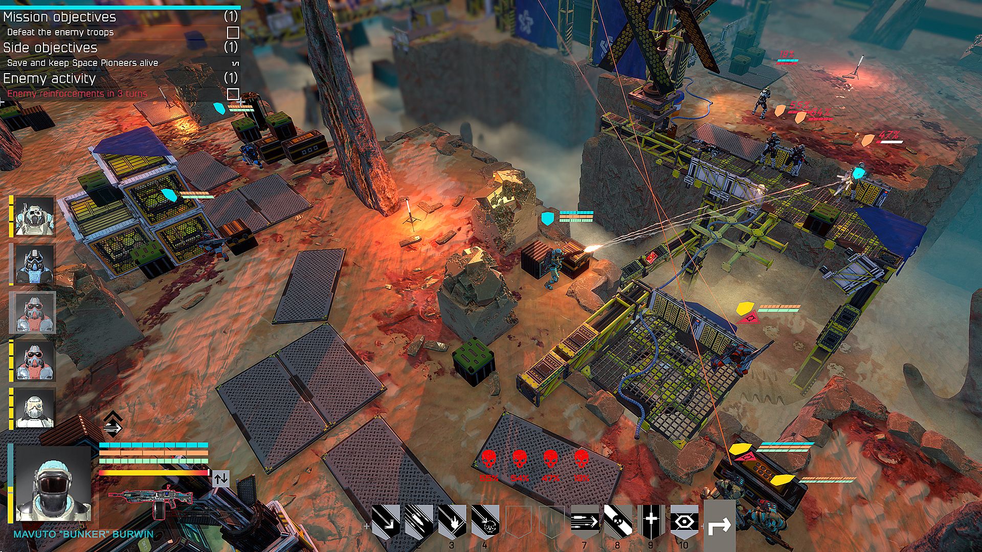 Your team are the trailblazers for the first wave of Free Space Pioneers exploring a newly discovered alien planet. While searching the hostile world for alien technology you lead your team into tactical combat against pirates, alien creatures and the troops of the Imperial Consortium. Set up outposts and dig sites to exploit the secrets that this new world holds, in order stand against the incoming invasion. Everything is out there for the taking, but nothing will come free.
