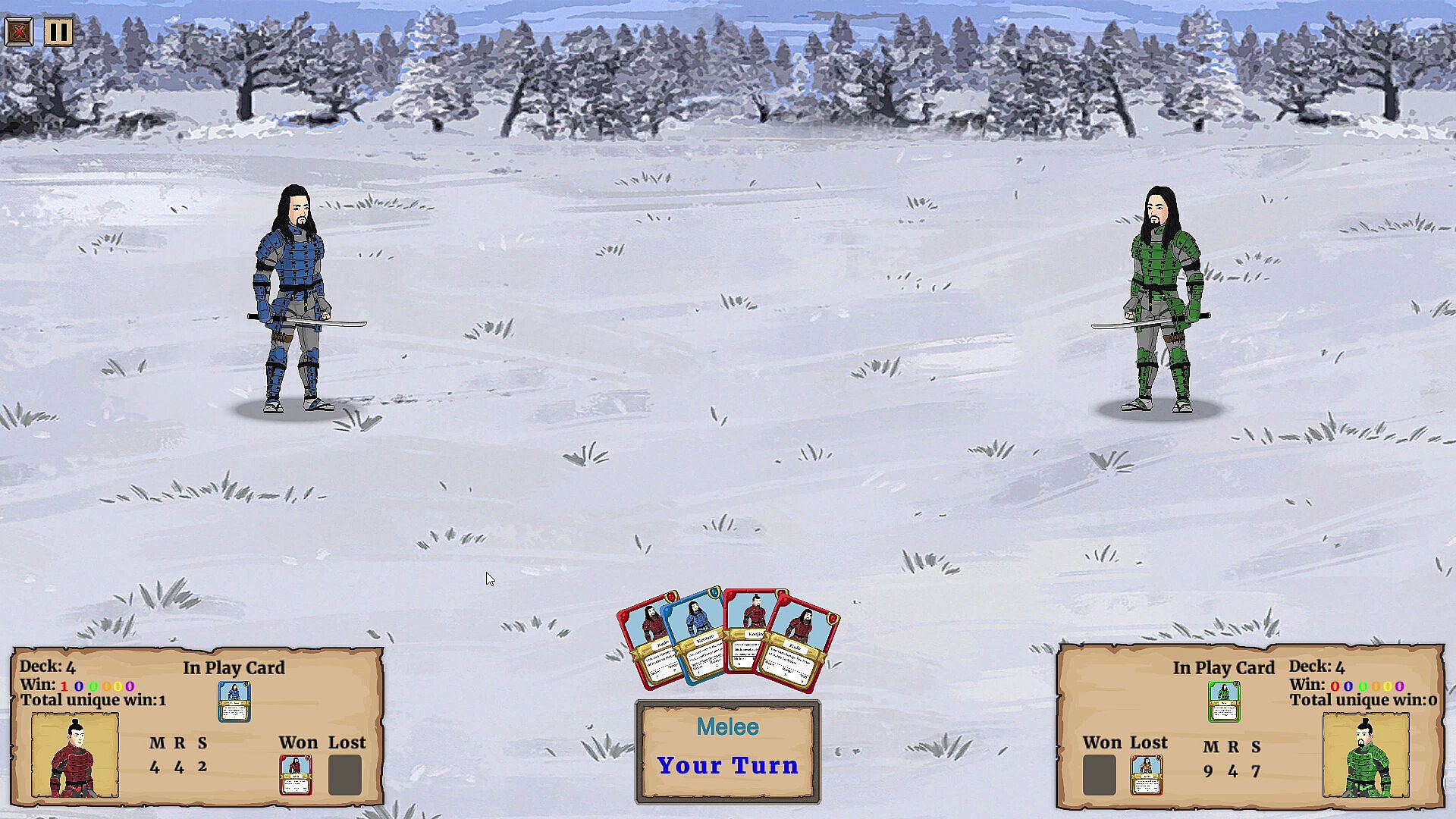 Each card has a colour, stats and abilities that determine the outcome of a battle between two warriors.
