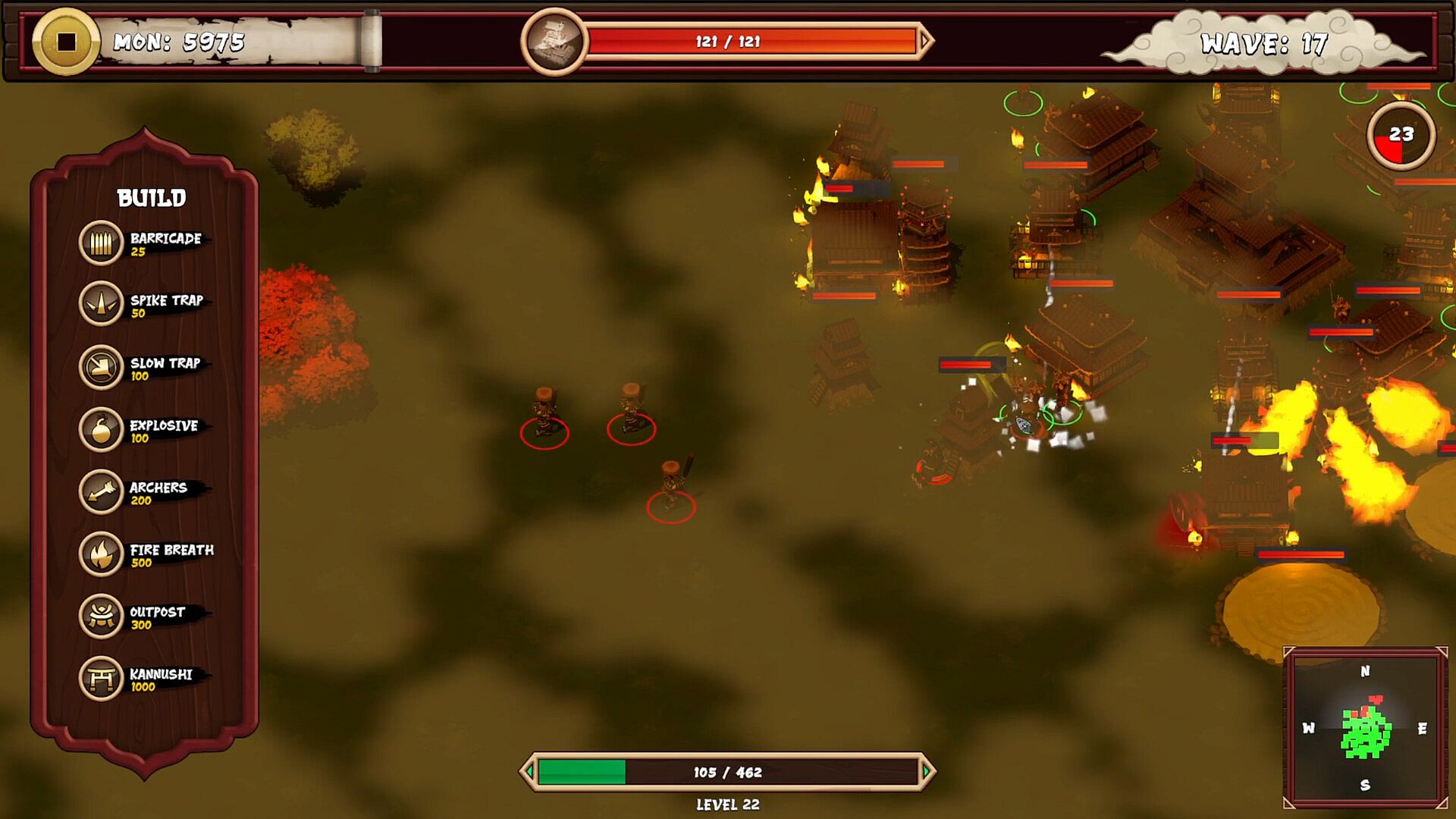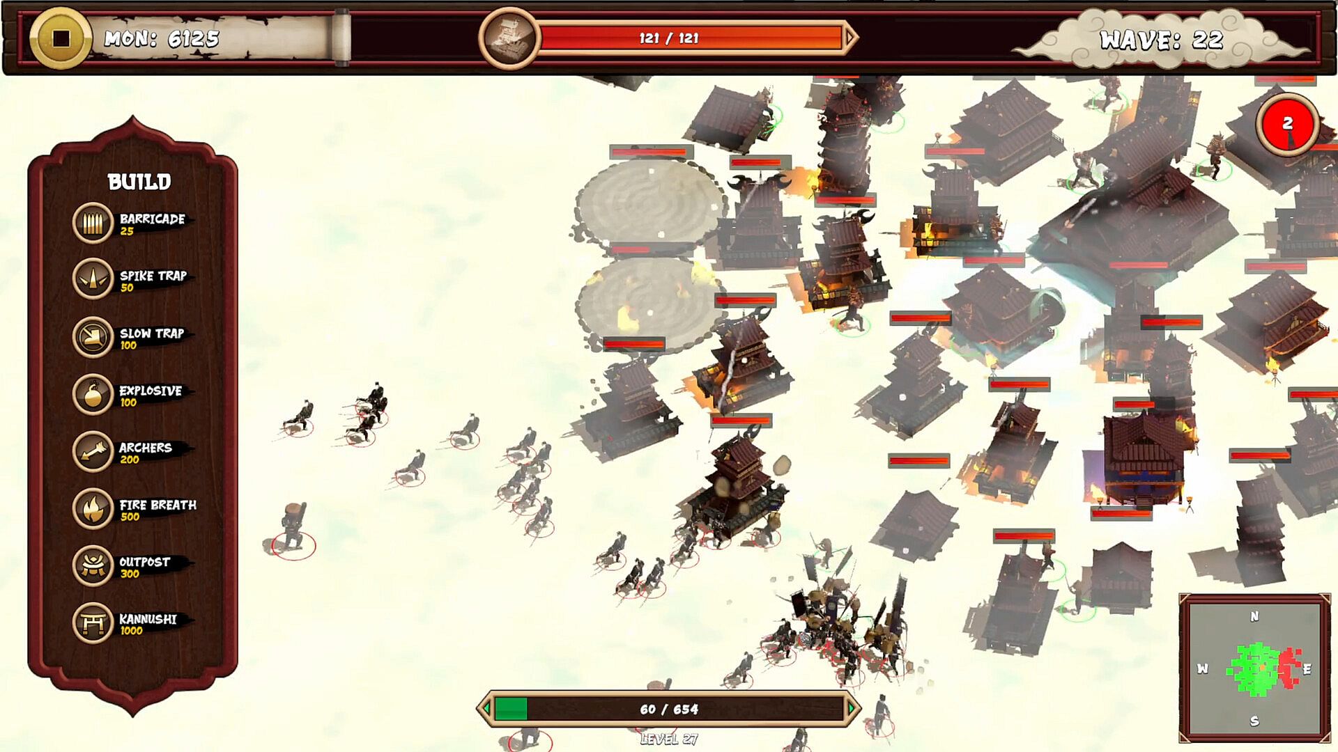 Spend your hard-earned Mon between waves to reinforce your position. Place soldier outposts to hold the front line, lay spike traps to punish advancing enemies, slow the horde with sand traps, and incinerate clusters with flame towers. Block key chokepoints with barricades and watch your enemies try and break through.