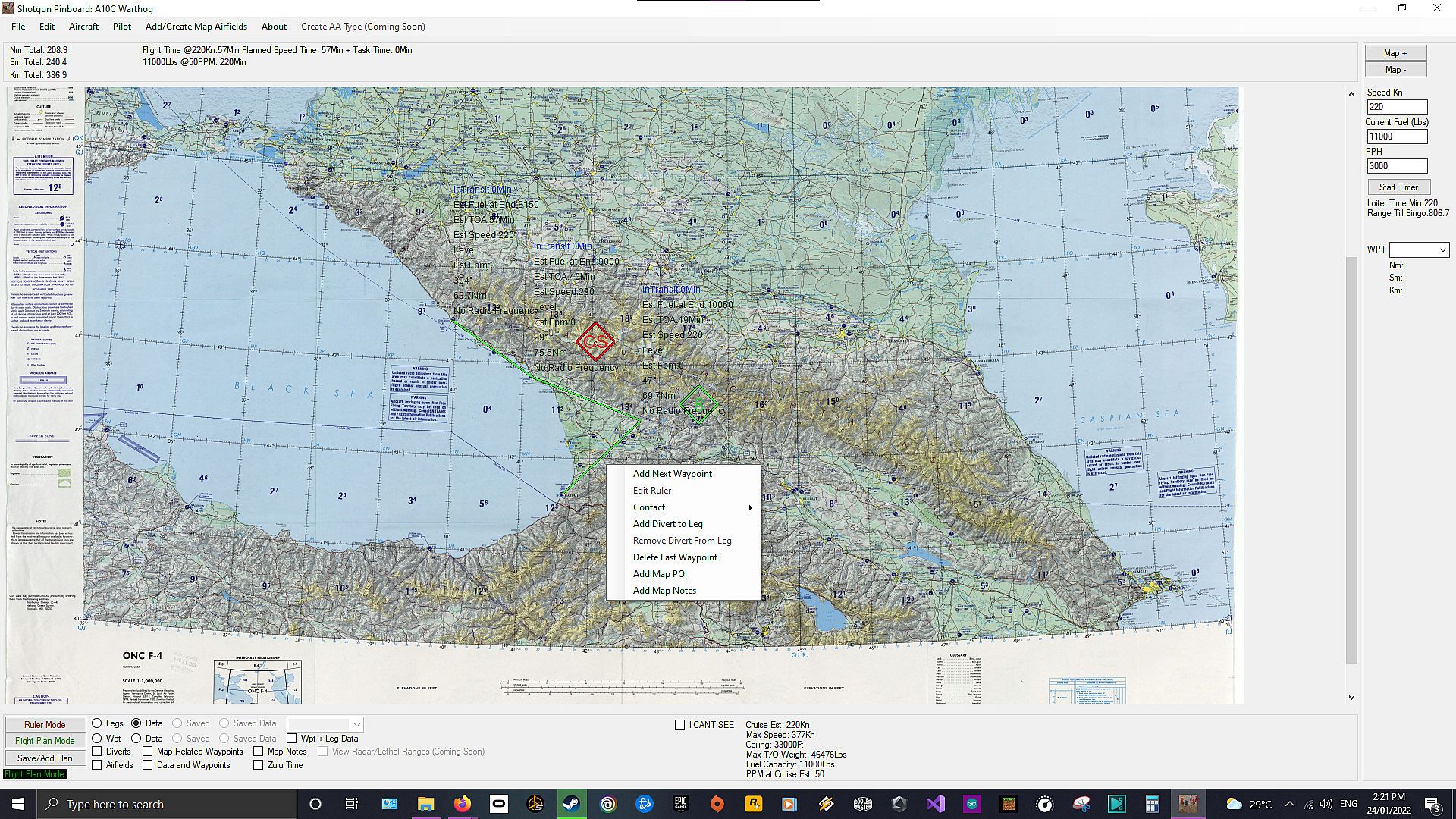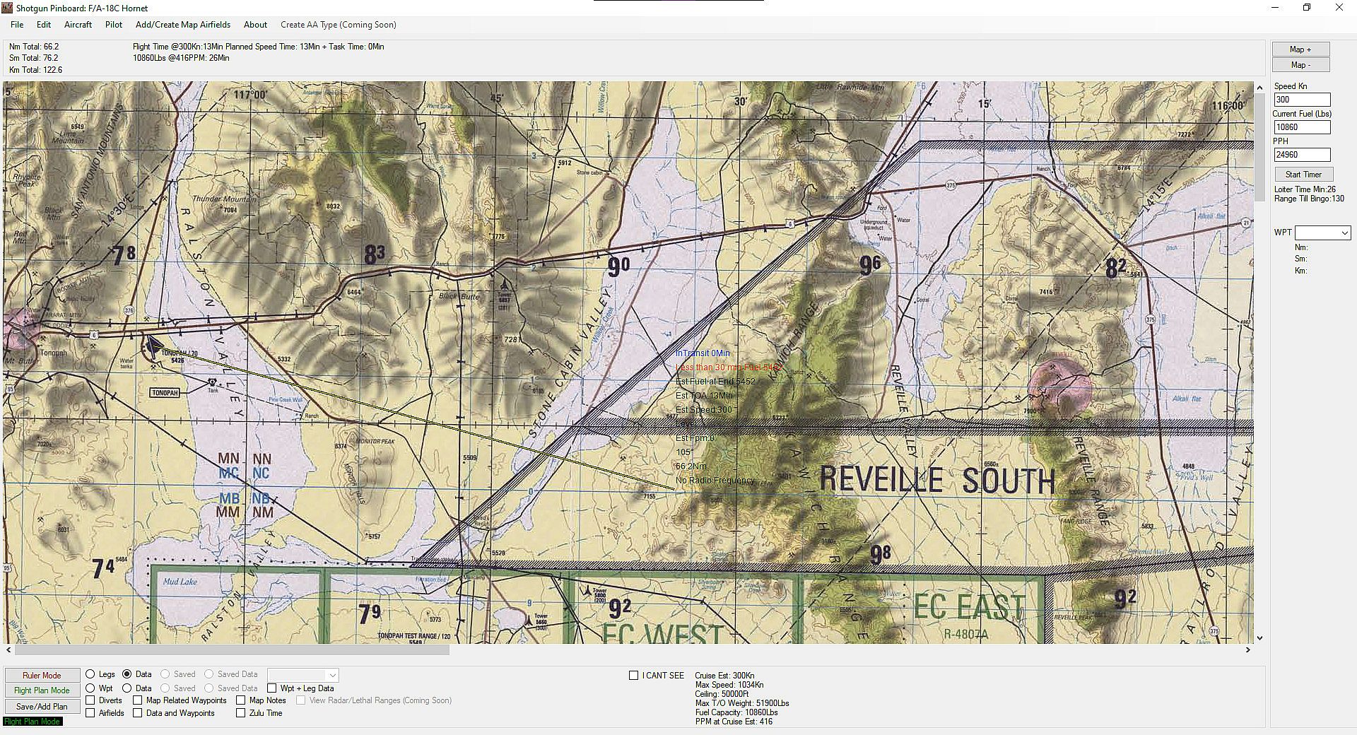 For the veteran, customization is key. You can create a new aircraft using basic data like fuel per minute, total fuel, cruise speed. if you want to plan for a Cessna, 737, Apache, Mi8 or the hurricane or flying fortress for IL2 etc etc etc, add the details and save the aircraft. even add a friend as the door gunner if you wanted to. With the ability to make adjustments to legs and waypoints by adding time for AA refuelling, landing re arming, pre planned speed and PPM fuel usage. you can calculate times and fuel to within a minute so fencing in after SEAD can be planned close enough to avoid a fuel wasting orbit, plan join ups or almost plan the first day of desert storm.