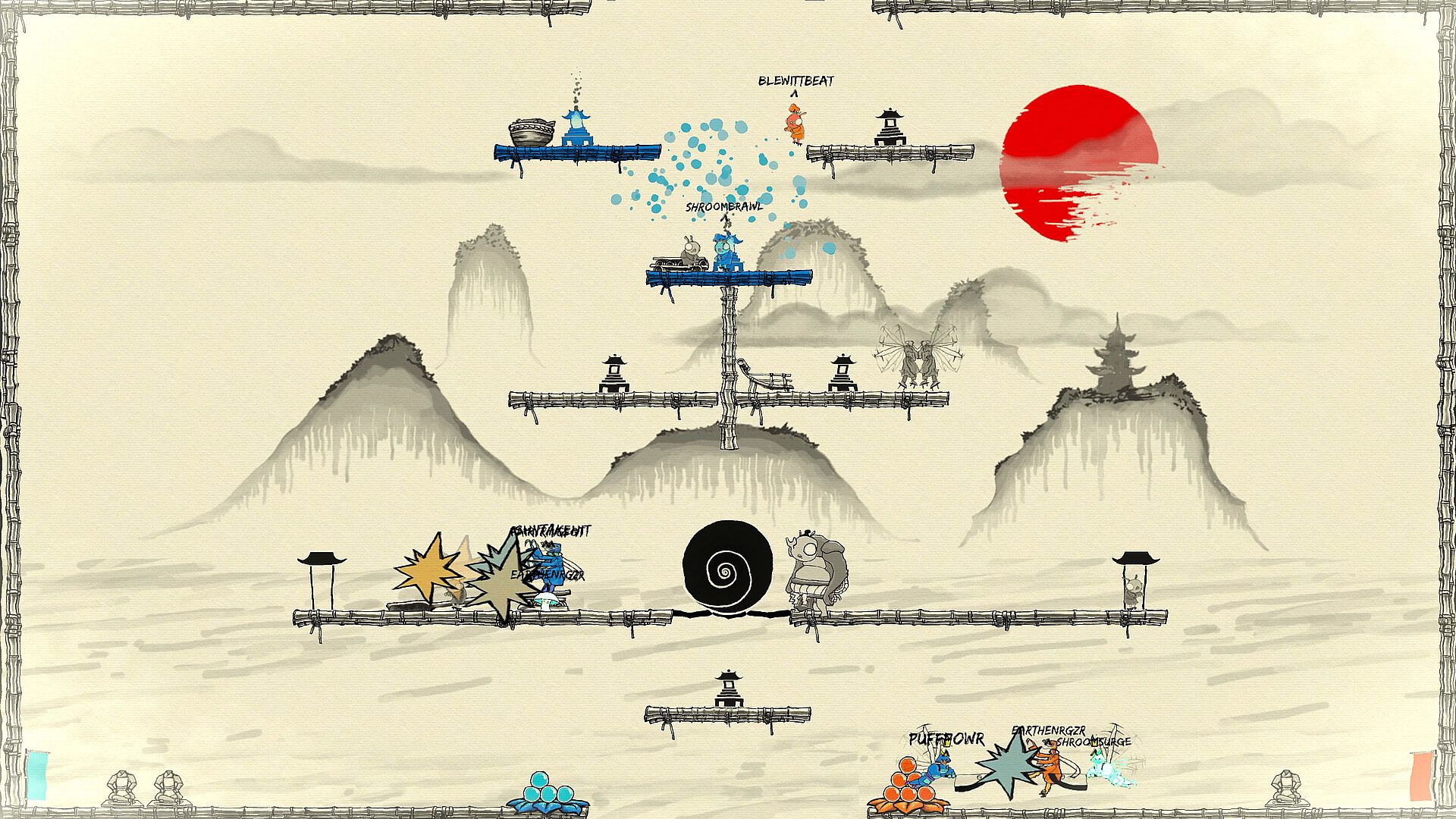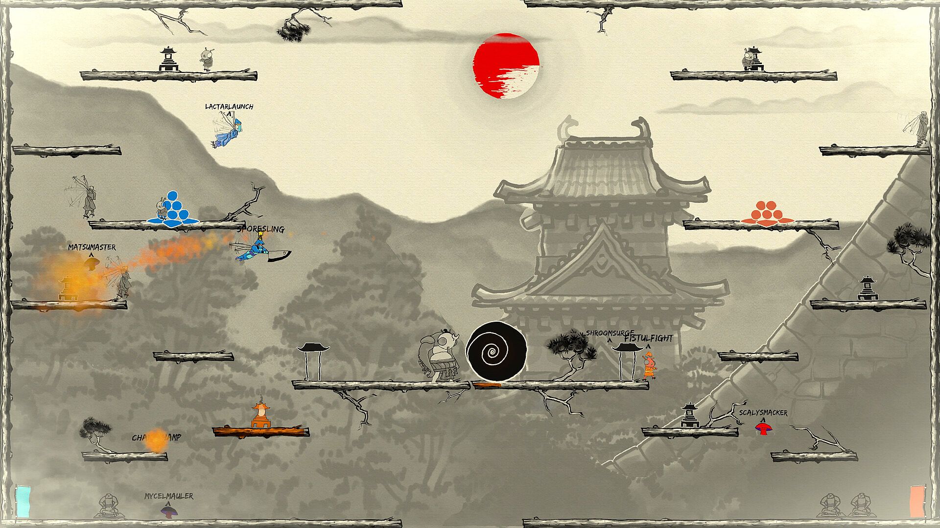 Manipulate a swarm of insect minions in fast-paced, team-based battles. Coordinate with fellow fungi to outwit opponents and fight for a taste of victory! Inspired by arcade hits like Killer Queen, Shroom Siege offers  easy-to-learn gameplay mechanics and Japanese-inspired ink-wash designs, providing depth and complexity for seasoned shrooms.