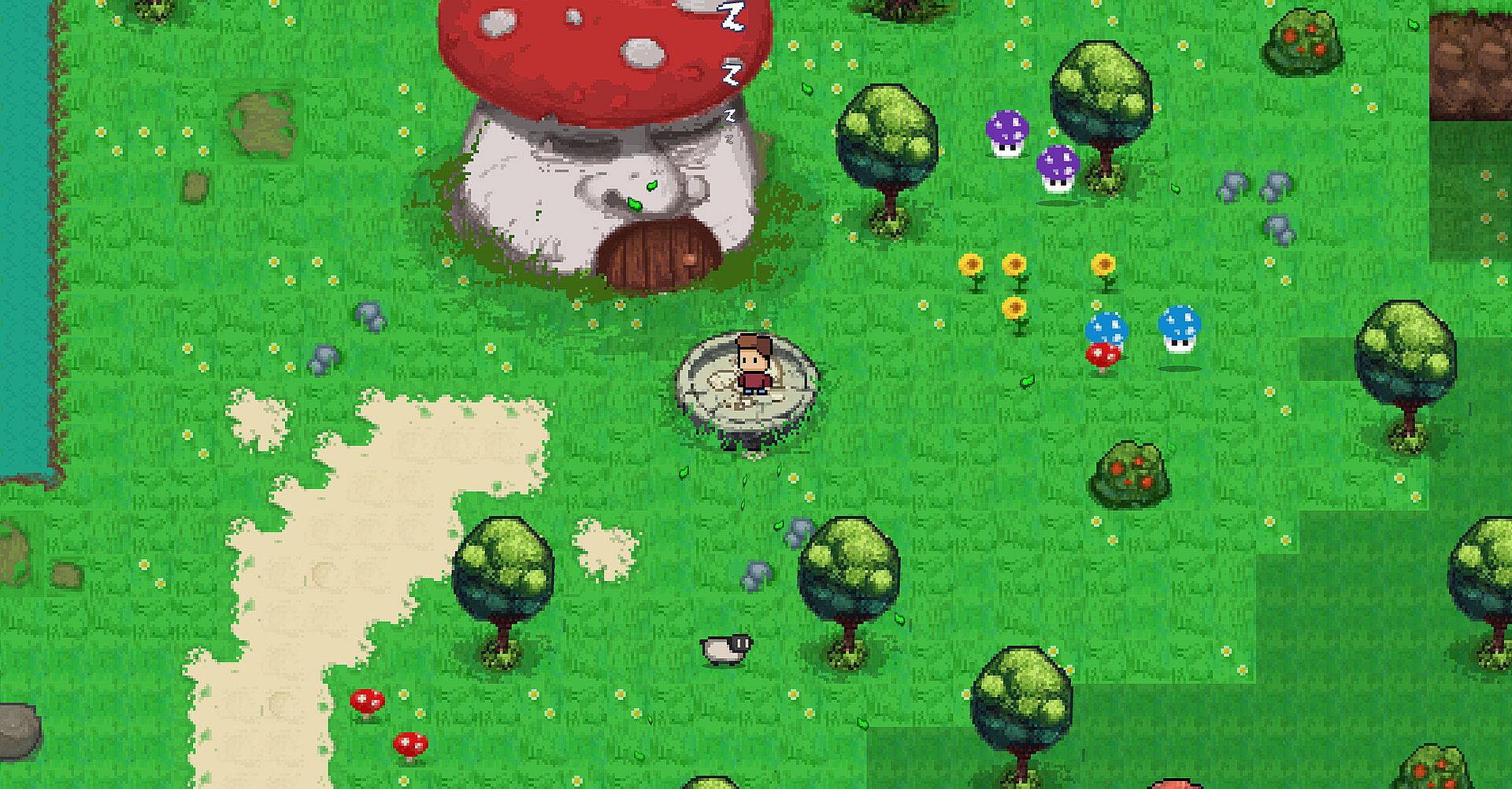 • Hand-crafted pixel world – colorful, top-down visuals with a soft retro feel.