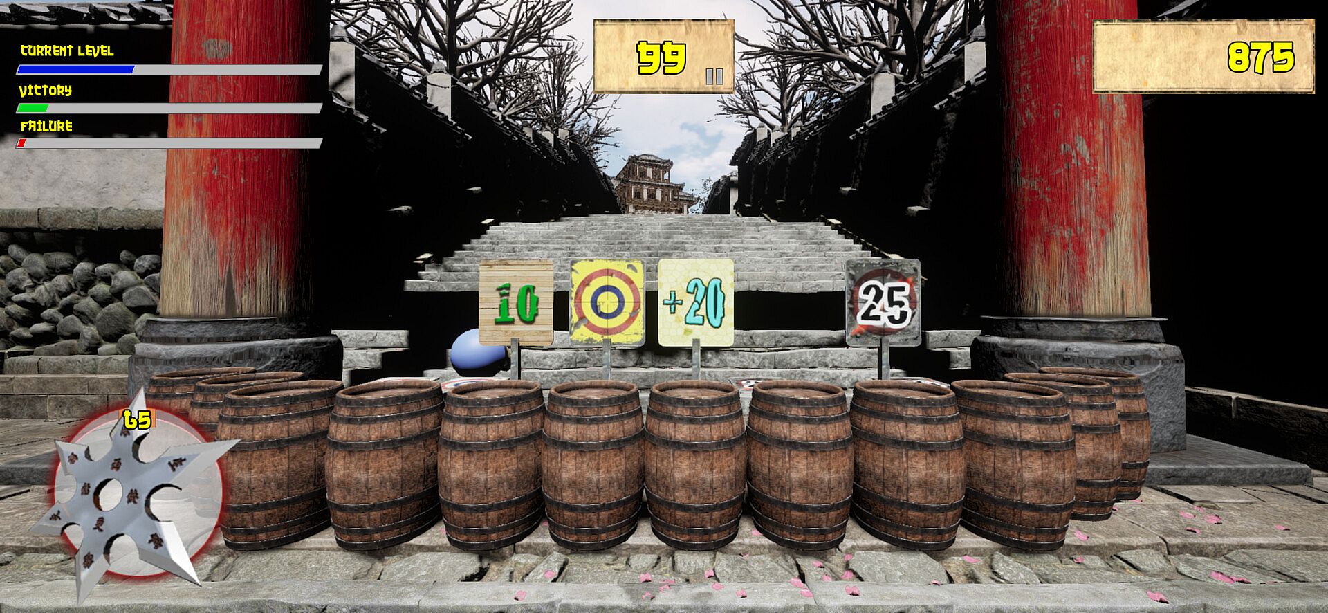 Hit too many bad targets at the start of a new level and be thrown back a level... Hit too many bad targets and you lose automatically. Play well and you will run out of ammo pretty soon but fortunately, if you manage to hit multiple targets with a single shuriken a bonus ball (or an enemy) will appear. If you manage to hit these bonus balls you will get more ammo but be aware, they don't stick around forever and they aim to be hard to hit.