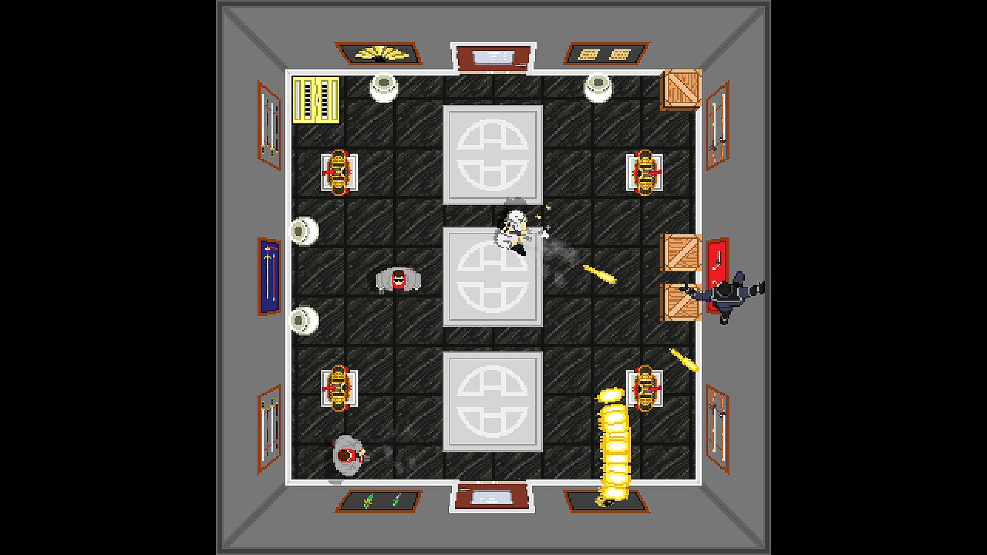 Master wall-running as a lone ninja battles syndicate thugs and robots across endless rooms in this top-down indie action shooter. Scale the four walls of each chamber, leaping from wall to wall or corner to corner to evade incoming fire. A grappling hook lets you snag weapons, items, and environmental elements while descending through ventilation ducts, dodging obstacles along the way. Climb floor by floor up Imperial Tower to rescue kidnapped ninja clan children from a secret basement vault. Collect weapons and items to unlock them for future runs, and grab vent keys to open tower shortcuts. Fans of precise movement and room-based combat thrive in this challenging ninja gauntlet.
