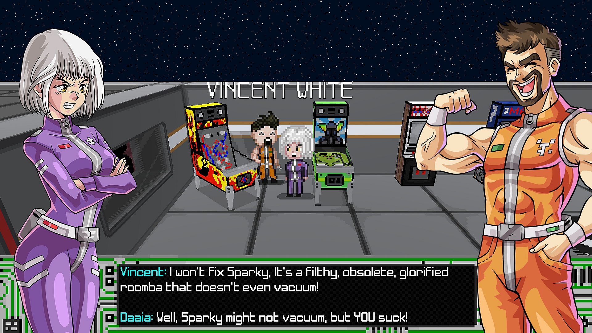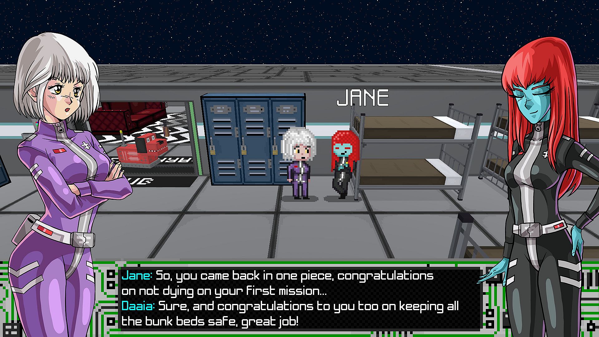 Meet Major Daaia, the best pilot the Federation has ever seen! During a routine defense operation, Daaia receives a mysterious message from humanity's mortal enemy, the Rolars. The message kick-starts an intergalactic adventure of epic proportions inspired by 80s and 90s anime. Visit alien planets, meet all kinds of weird and silly characters, and uncover the truth behind the war with the Rolars.