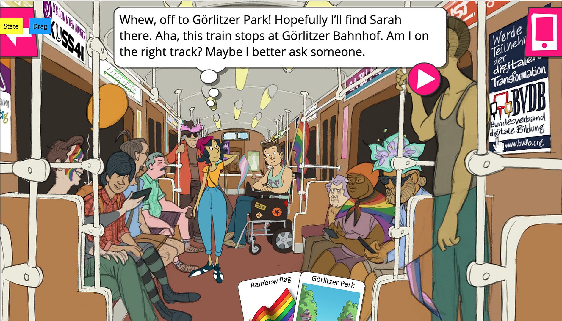 Sibel's Journey is a game that follows Sibel as she navigates a transformative weekend in Berlin, encountering people who live and love in many different ways. The game celebrates queer identities and relationships, exploring gender fluidity, diverse sexual orientations, and the complexity of coming-of-age as a young person within the LGBTQIA+ community.