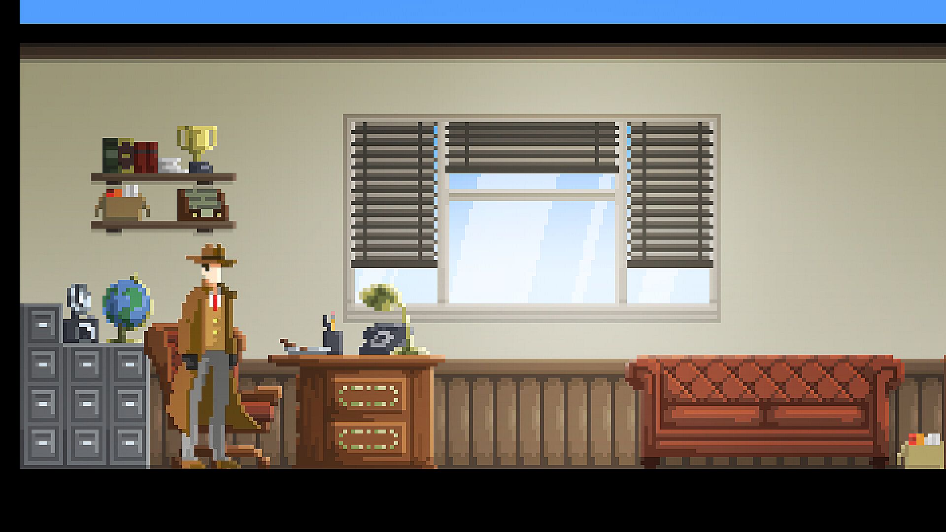 Meet Detective K from a boring future utopia, now solving mysteries in our time! Investigate scenes, talk to suspects, and use deduction to uncover the truth. Your observation skills and choices determine the outcome. Join this quirky time-traveler on a detective adventure!