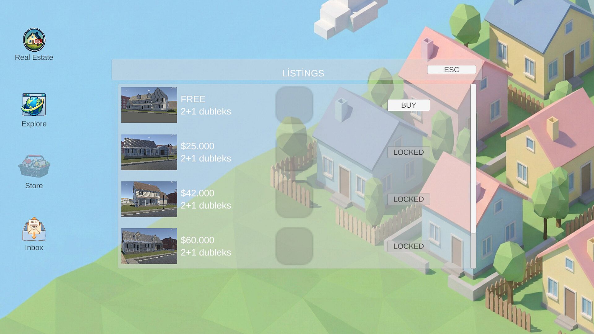 · First-person real estate simulation gameplay