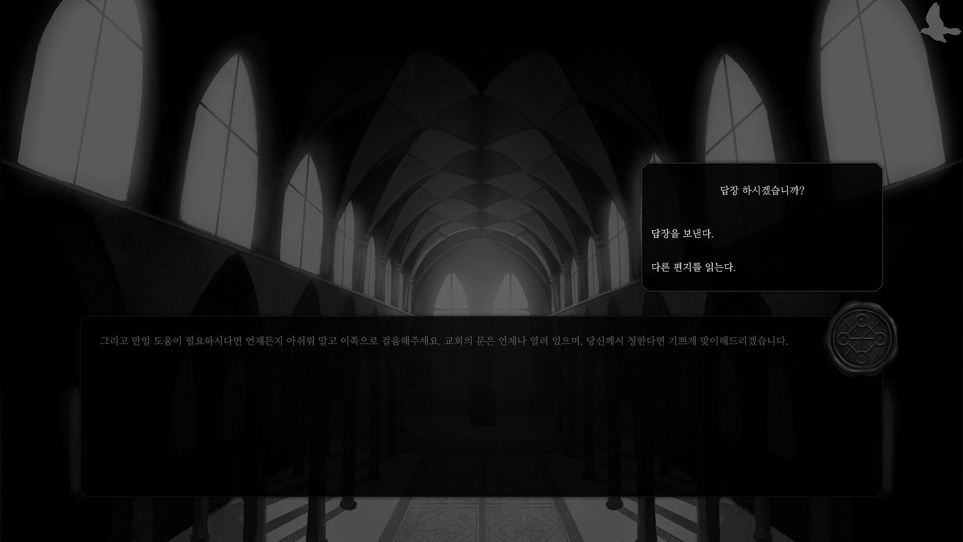 “Sign White” is a visual novel based on the system of sending and receiving letters via pigeons, and the protagonist interacts with three characters.
