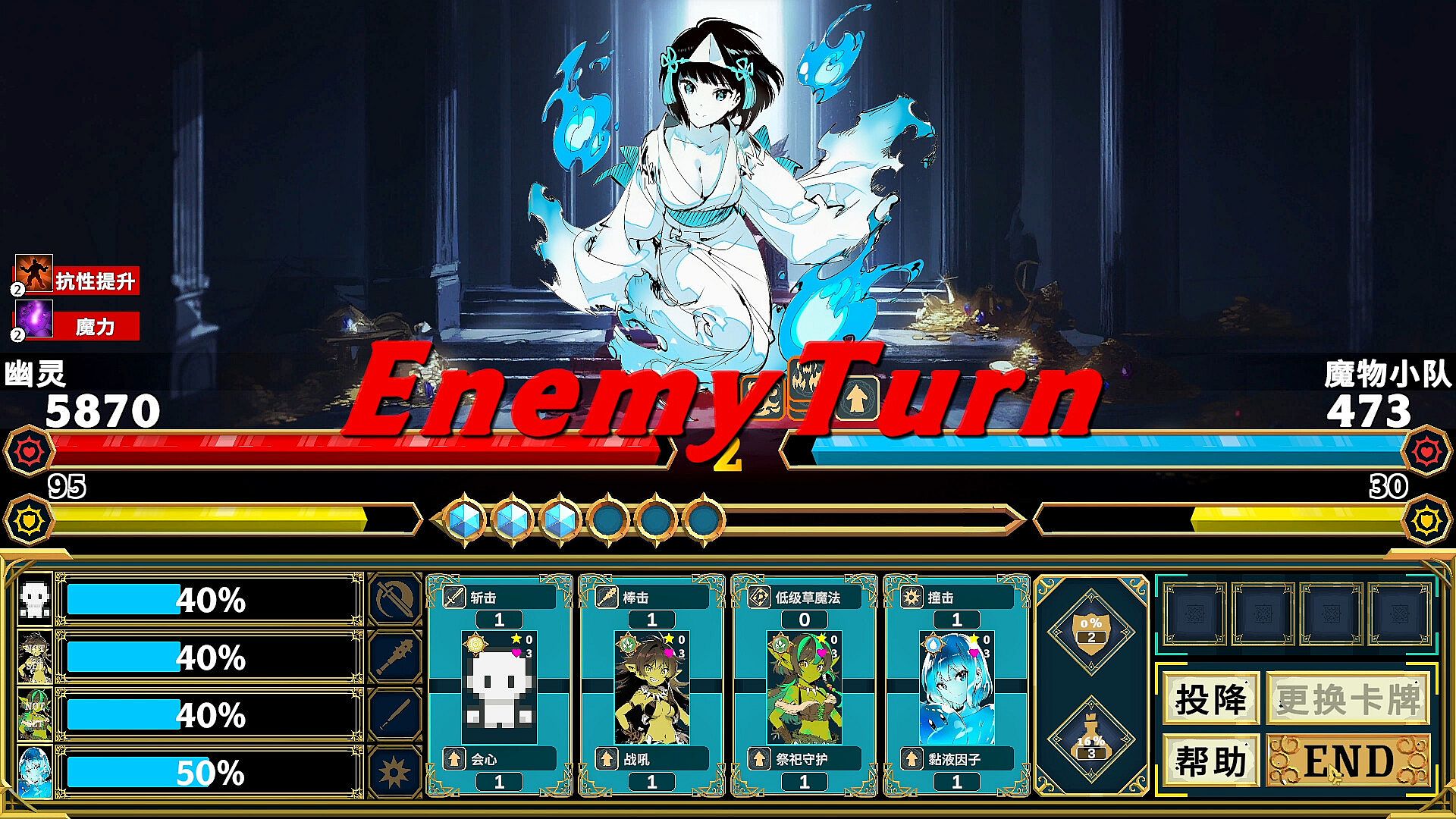战斗借鉴了兰斯X并加入了个人喜欢的元素:韧性处决、卡牌充能、物品使用、魔物娘捕捉、以及新的攻击BUFF系统