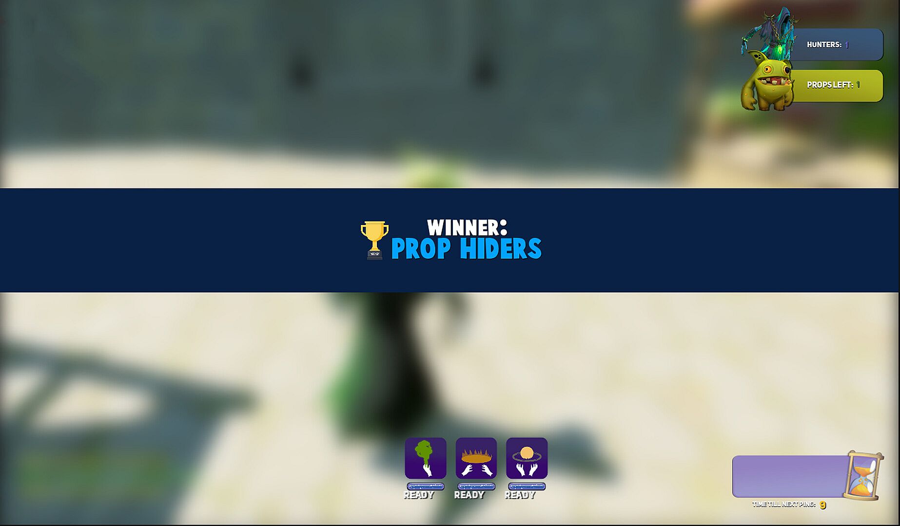 As a Prop, finding a smart hiding spot and staying perfectly still is essential. Utilize your surroundings to outsmart the Hunters and survive. Will you manage to stay hidden until the time runs out, or will you succumb to the Hunter's keen eye?