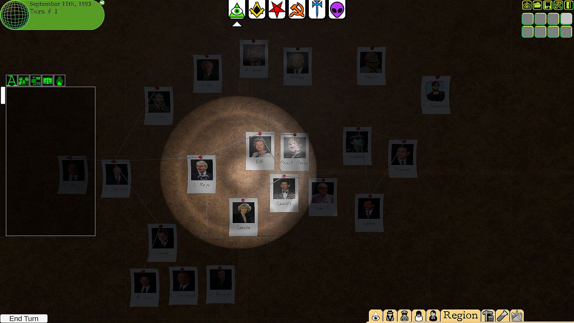In three unique scenarios, either fight for control of the globe in the aftermath of the end of the Cold War, play out the fall of the USSR in Europe, or make sure your conspiracy controls the new government as you manipulate the 1992 United States Presidential Election. Interact with historical figures from the 1990's like Bill Clinton, Princess Diana, Nelson Mandela, Yitzhak Rabin, and Muammar Gadhafi; and steer the fates of future power-players like Vladimir Putin, Donald Trump, and George W. Bush. Or, you know, kill them. Uncomfortably recent history is your sandbox.