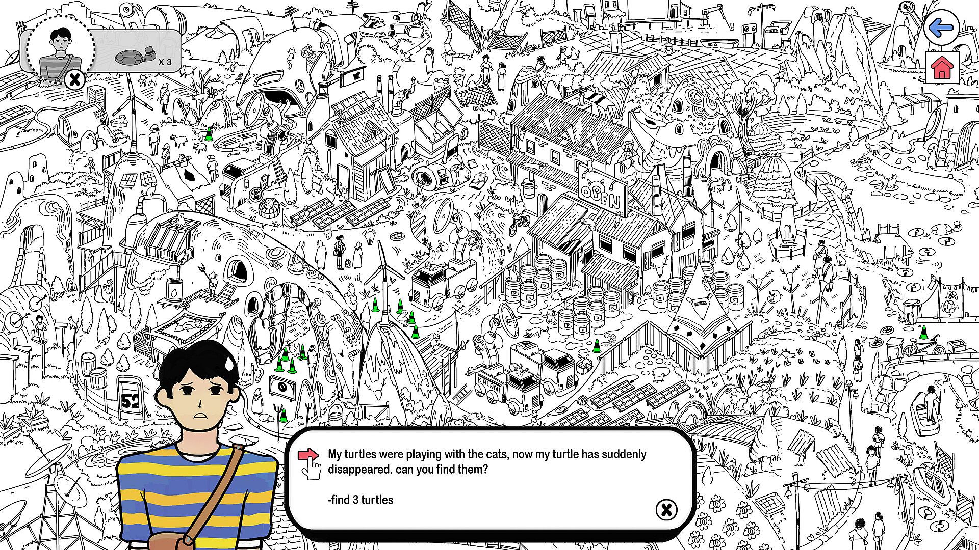 10 Hand-Drawn Levels β Explore cozy, illustrated spaces, each with its own mood and hidden details.