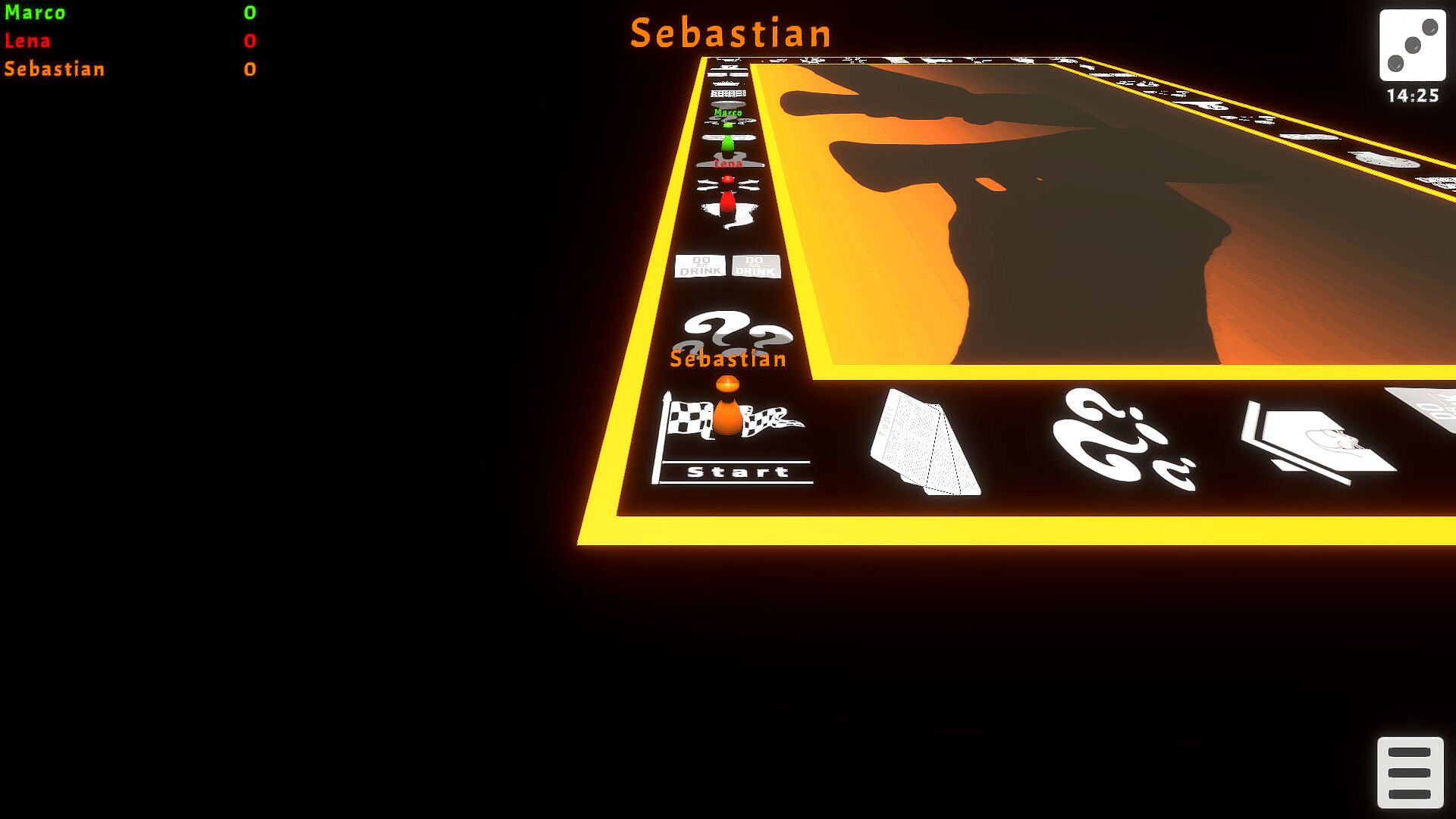 Depending on which field you land on, you can expect: Truth, Dare, Topics, Do or Drink and other Tasks.