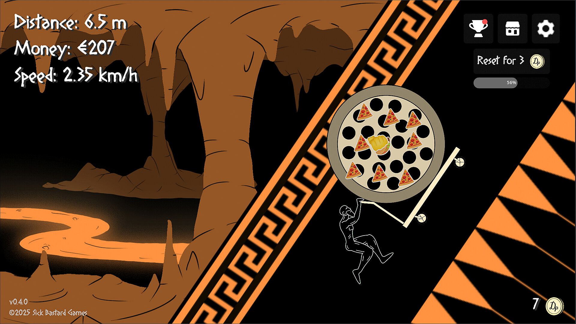 Based on the famous Greek myth, now YOU can also roll a boulder indefinitely! Earn money, unlock upgrades and collect decorations for your customizable boulder.
