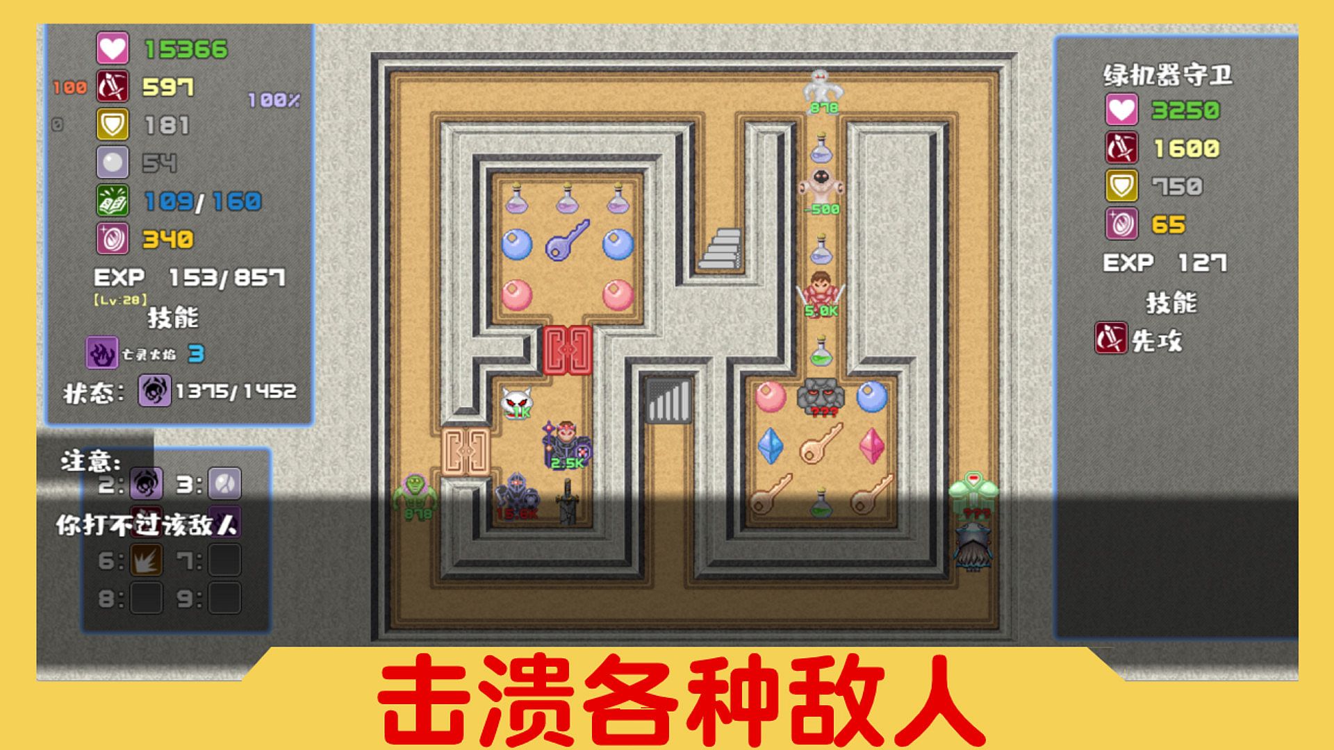 - Redrawing of the classic magic tower monsters, more than 60 kinds of enemies, master the enemy skills, defeat the lord and the last demon king, to create their own adventure!