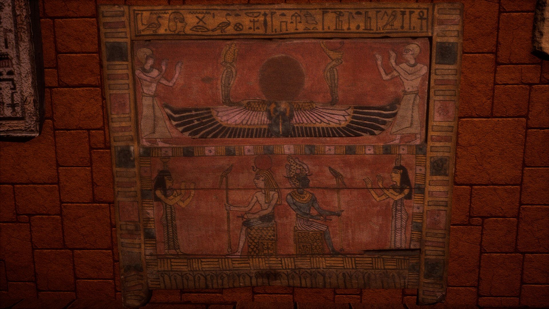 Break each seal by solving small environmental puzzles and reading the meaning of hieroglyphs and markings.