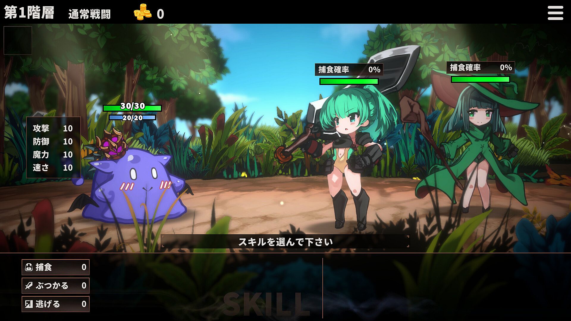 スライムになり「捕食」スキルで相手のスキルを奪って成長するローグライトゲームです。