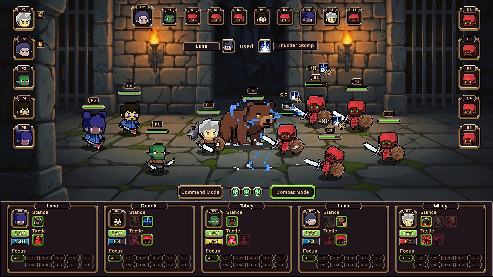 Lead a team of five heroes through a strategic roguelike autobattler built around skill rotations and stance control.
