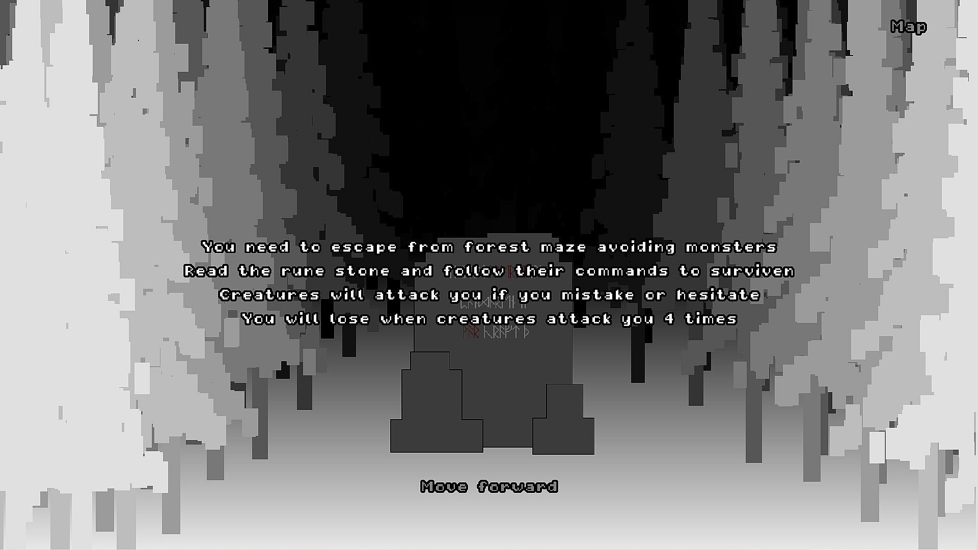 Read the Stone runes to understand the rules of this place and to know what actions do you need to perform to escape creatures.