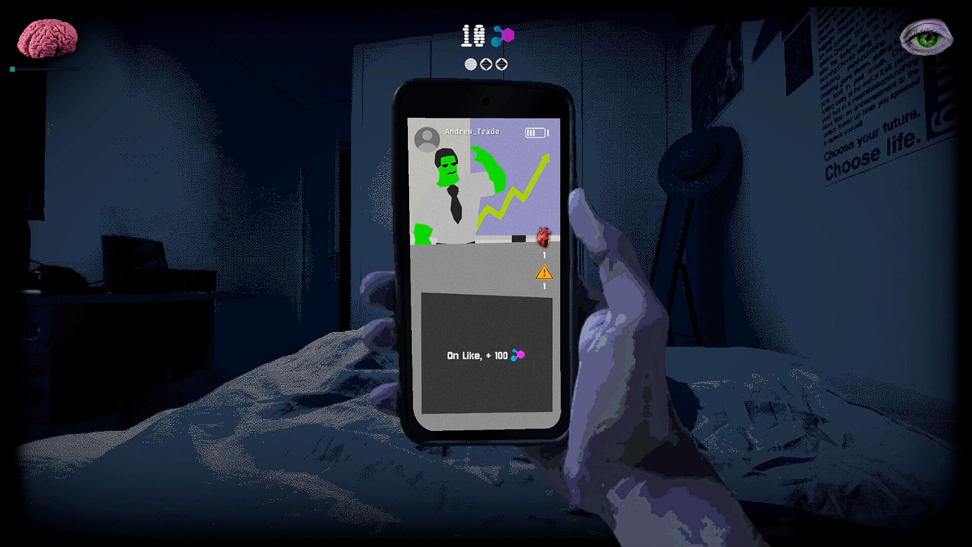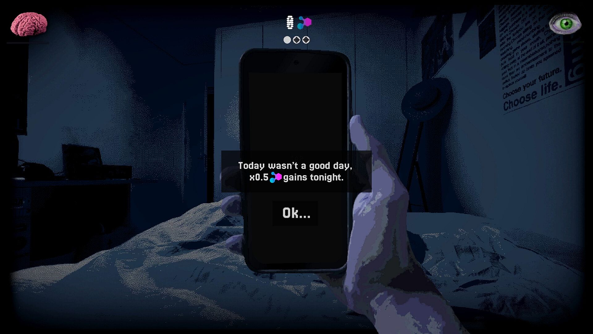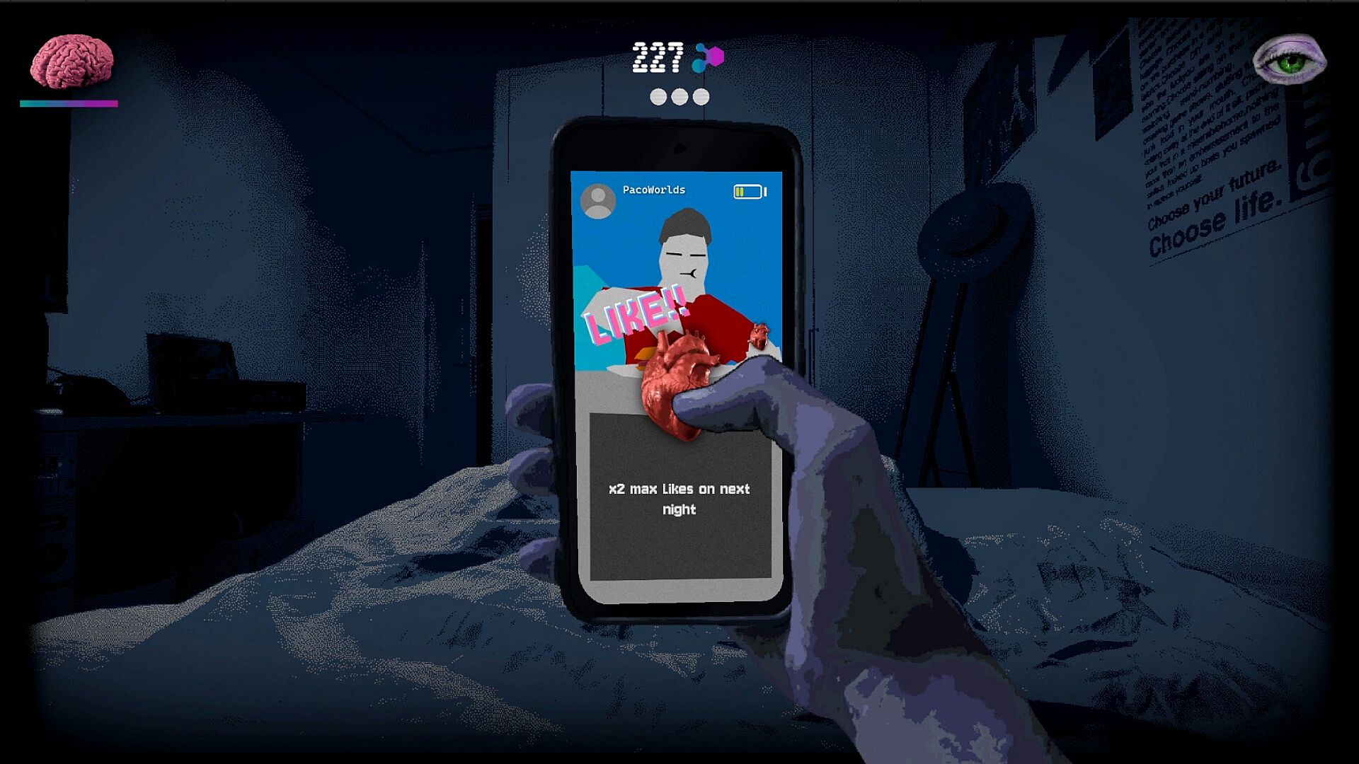 SKROLL is a survival roguelike where your own brain is your worst enemy. It wakes you up every day with the same demand: reach your dopamine quota or suffer the consequences. Your tool: the phone. Your only task: scroll endlessly to satisfy its increasingly impossible demands.