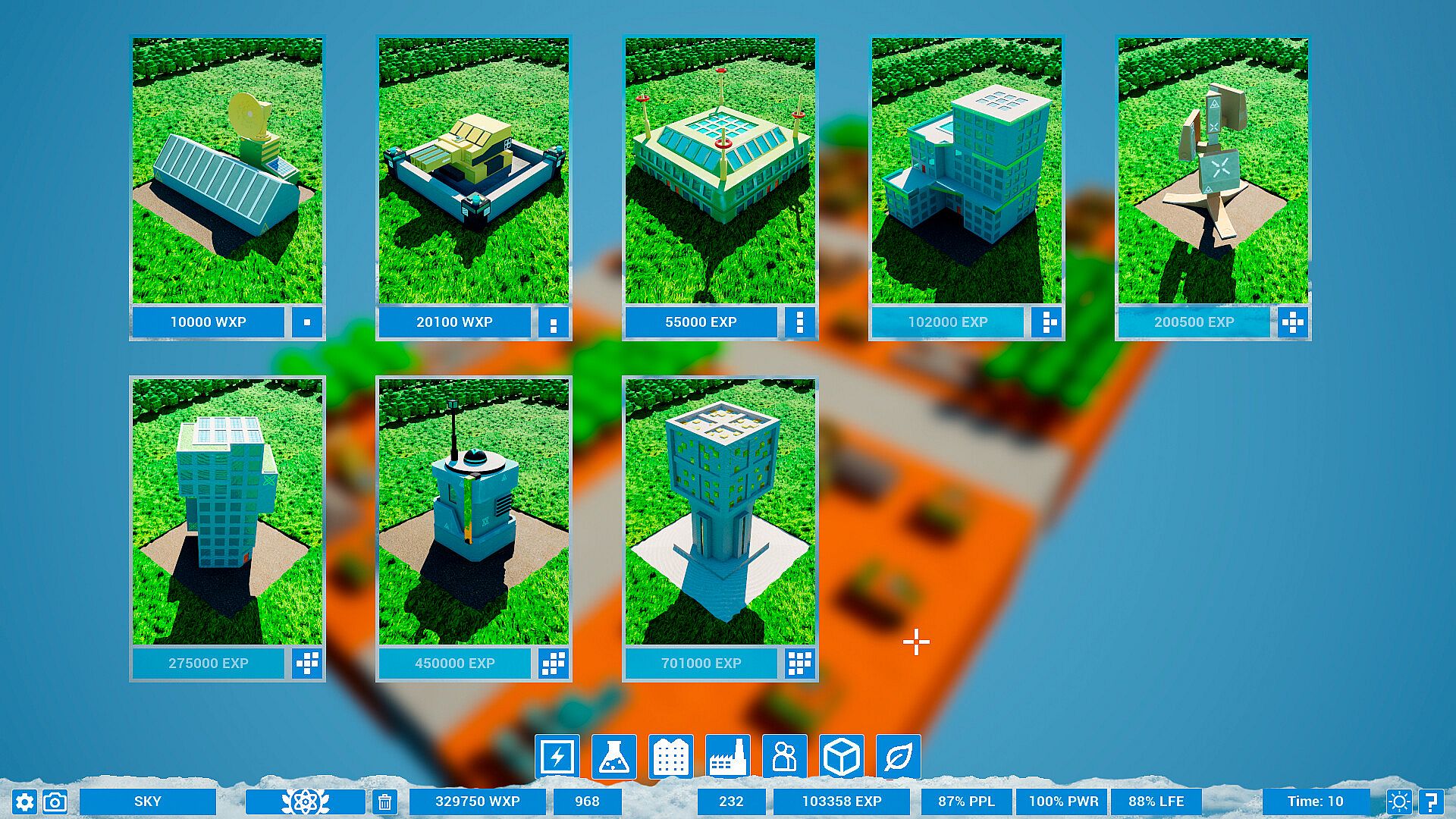 SKY is a new way of looking at urban planning strategies. Change voxel landscapes at your discretion, develop technologies, build environmentally friendly cities of the future, and withstand any blows from the elements. After all, you are on the last piece of land in the heavens of this world.