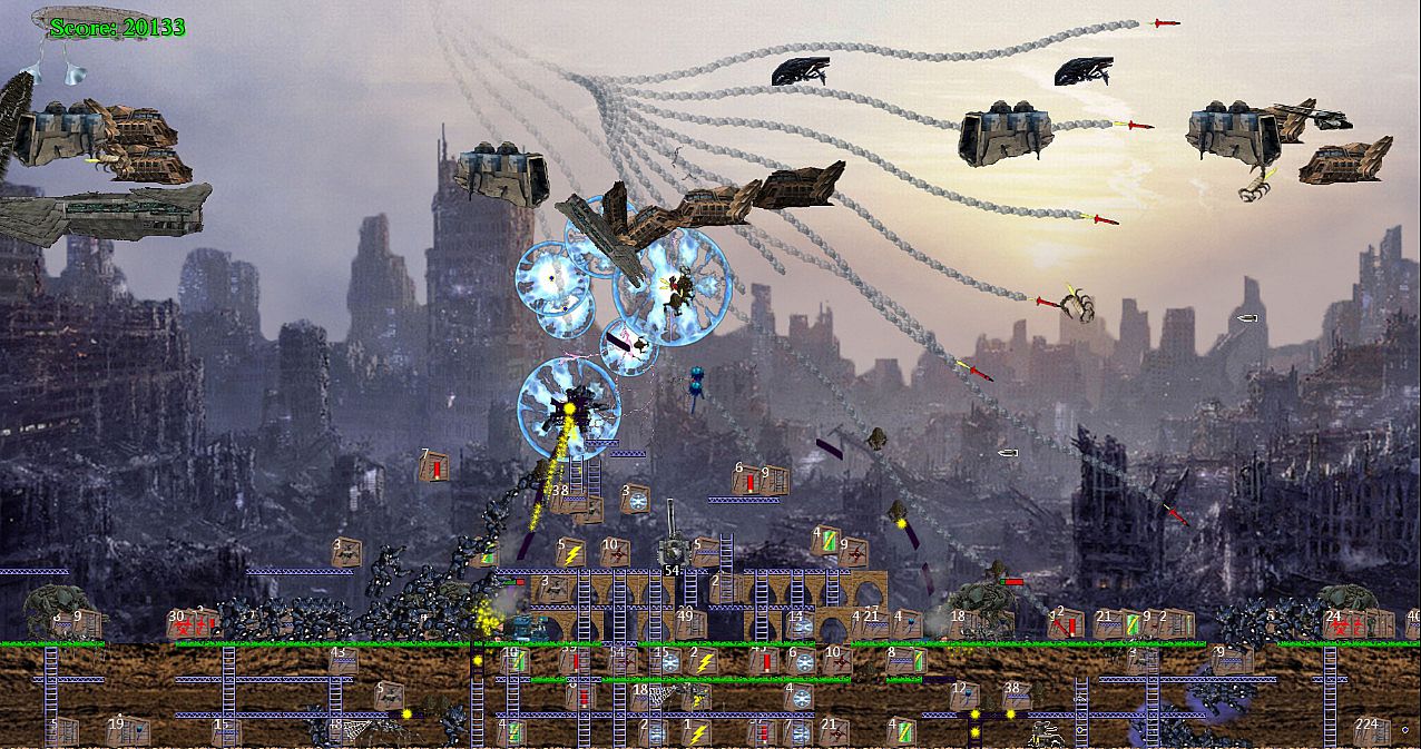 Skyraine is an action packed platform/missile defender game. Stranded on an alien planet, an ancient turret is your only defense against the invasion. Between waves of enemies rush repair your base and collect supplies and power-ups. As the game progresses new enemies enter the battlefield, each with their own devastating weapons. While aim and precision may help you get through the early levels, only with the perfect strategy can you hope to conquer the final difficulty. Play with up to 3 players in local multiplayer, and face 4 exponentially challenging difficulties.