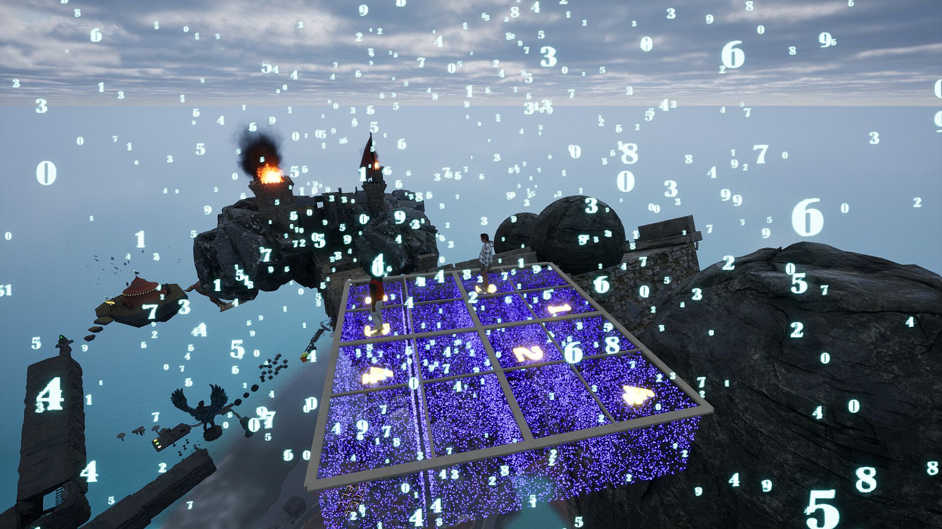 Skyward Steps Together is a third-person multiplayer platformer game set in a city kept in balance by the mystical Harmony Stone. On a peaceful day, an unexplained surge of cosmic energy swept through the sky, a rare natural phenomenon unseen for generations. Overwhelmed by this surge, the Harmony Stone destabilized and shattered, scattering its fragments across the sky. With the stone broken, the city's balance collapsed, and peace gave way to uncertainty.