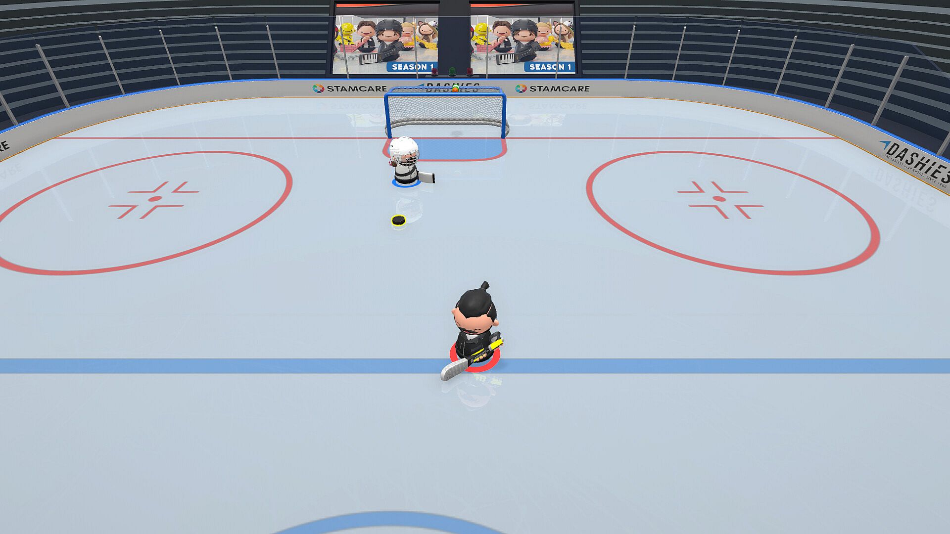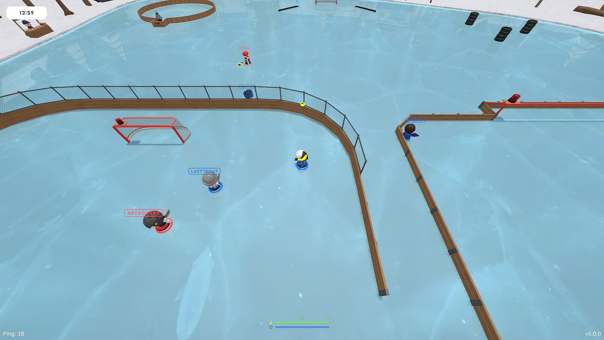 Get away from the pressure of a match and roam around on the pond with others online. Make passing plays, use the training areas, play air hockey or participate in the sumo minigame. You can even join the pond while waiting for matchmaking!