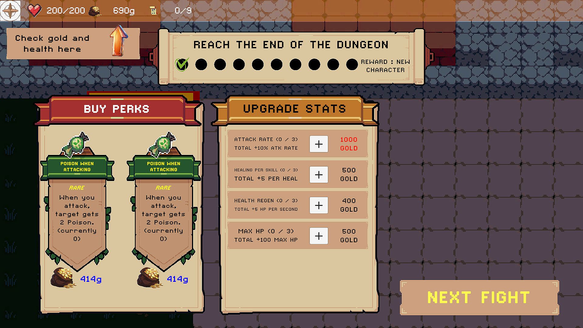 Slash your way through the dungeons, upgrade your character, buy perks, unlock characters and finish the dungeon!