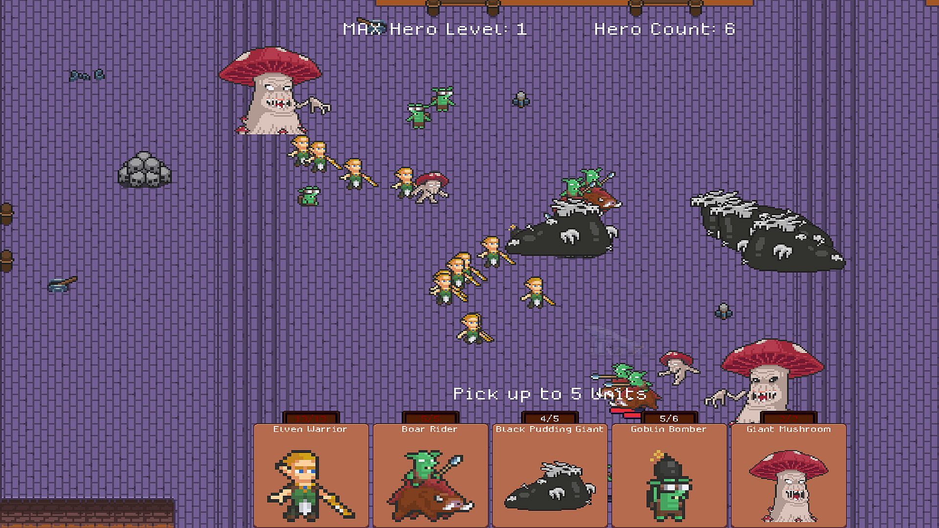 For extra fun or challenge the player can choose to level up the hero at any time no matter the game mode they are playing in.
