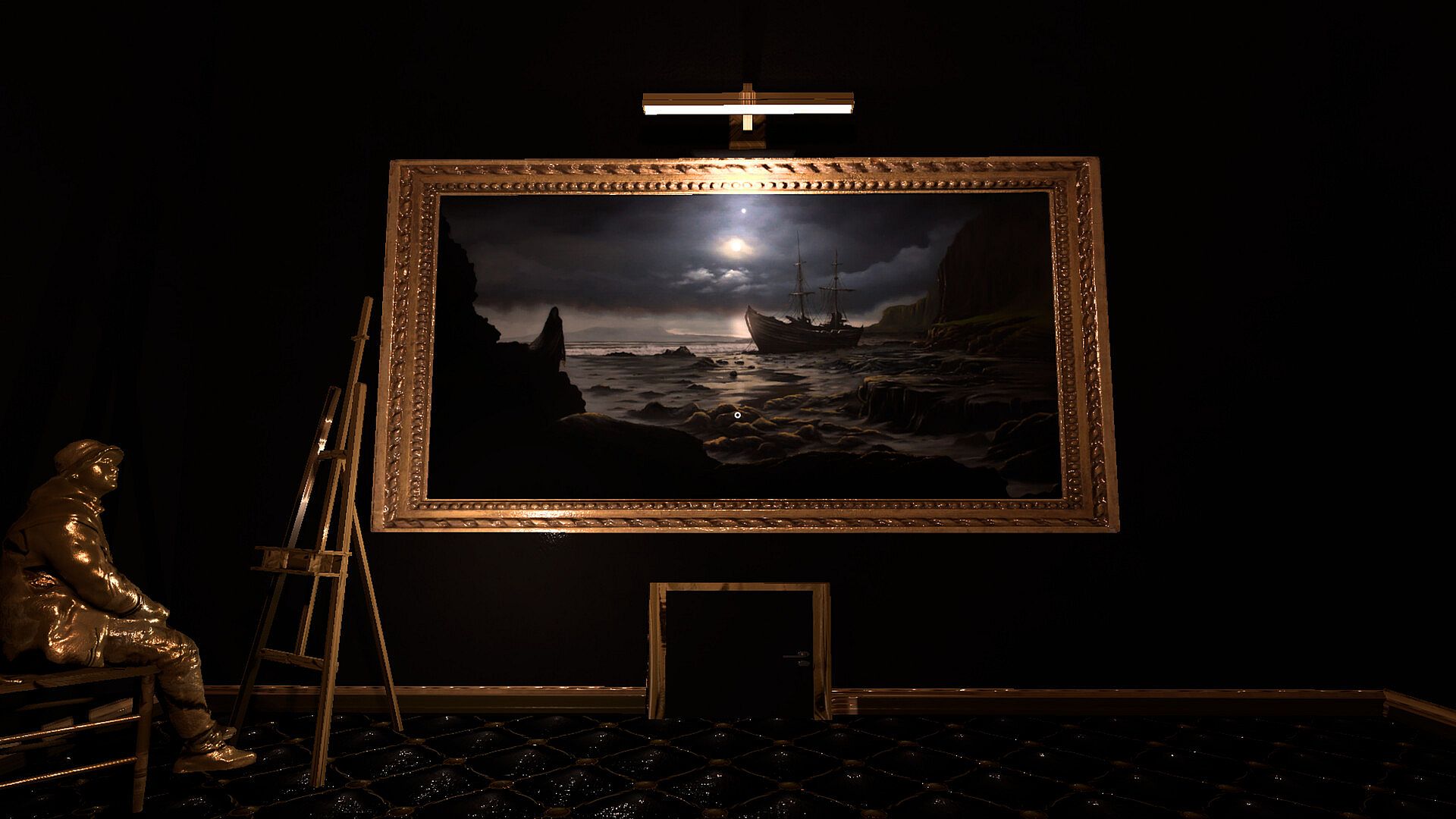 The game contains no AI Artwork, all the Oil paintings on walls are my own originals - Alex Kerr Painting