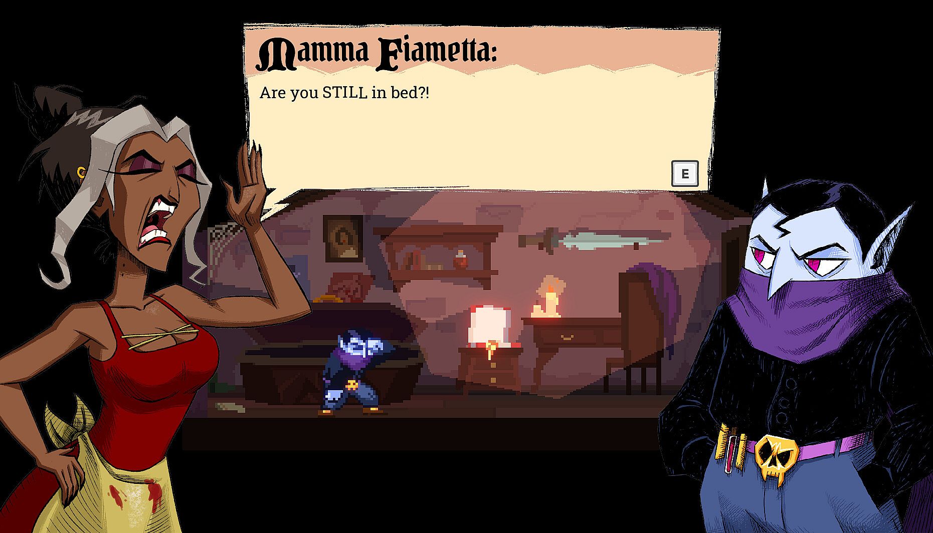 ... to hungry demon custumers inspired by medieval Italian folklore with a cartoony twist.DOUBLE PROTAGONIST ACTION