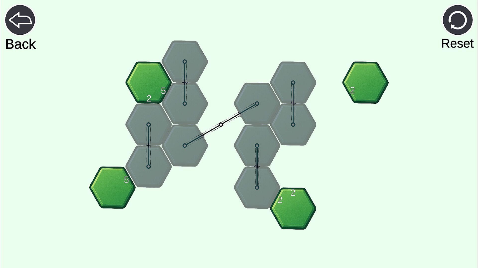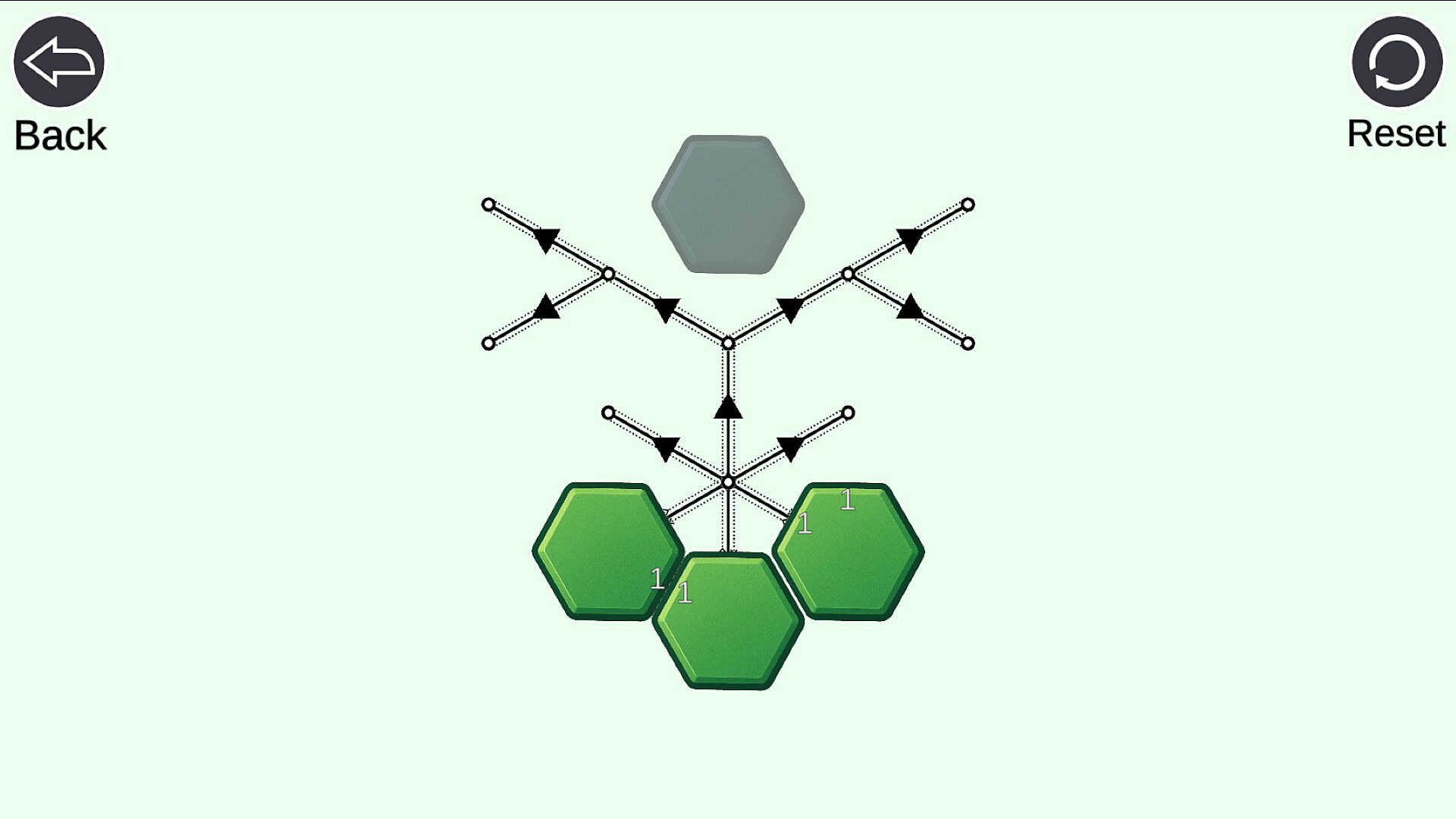 This game's rule is simple.You just move the hexagon.Numbers of each hexagon must be equal to count of hexagons on the same direction.