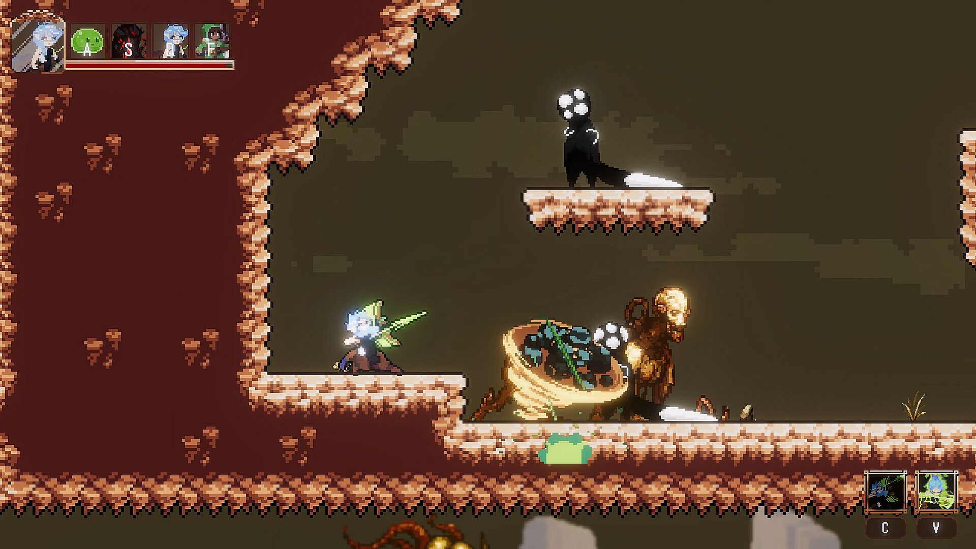 • Emotional pixel art visuals, blending dark fantasy with haunting beauty
