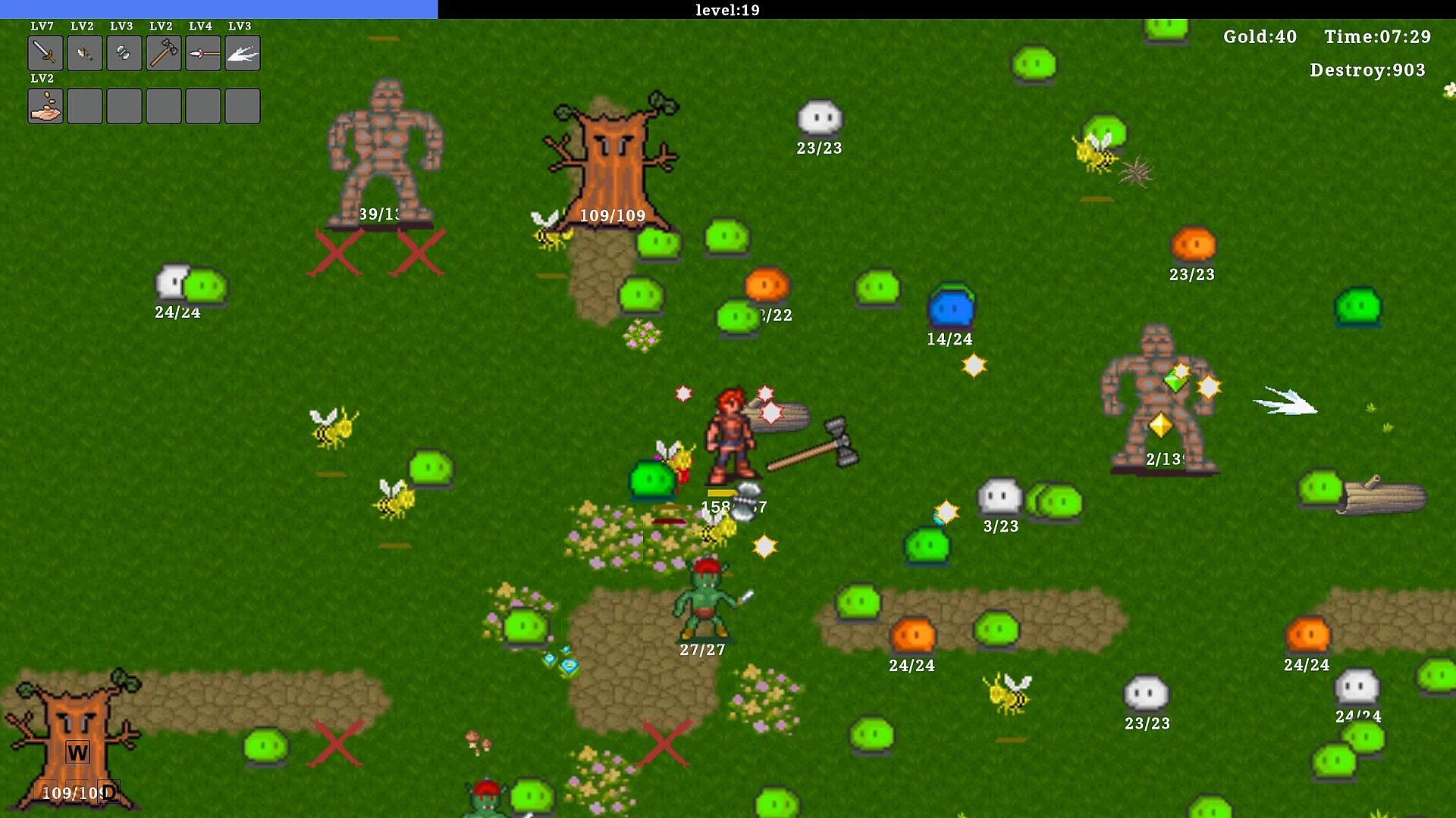 In the early stage, you can look for treasure chests, which contain magic stones, gold coins and apples.