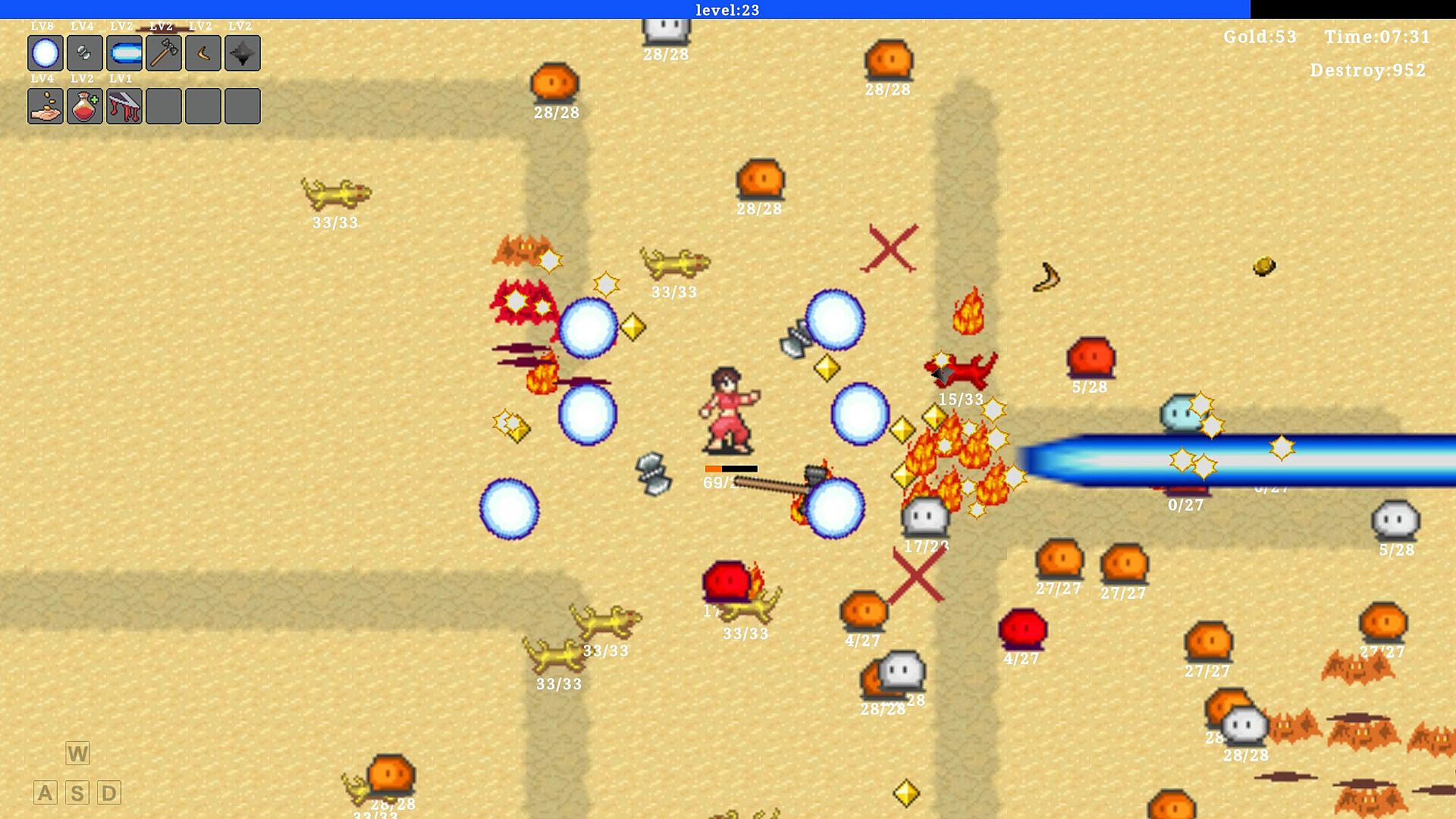 You only need to operate the hero to move, collect magic stones and gold coins, then upgrade, choose skills, and combine multiple skills to get the best choice.