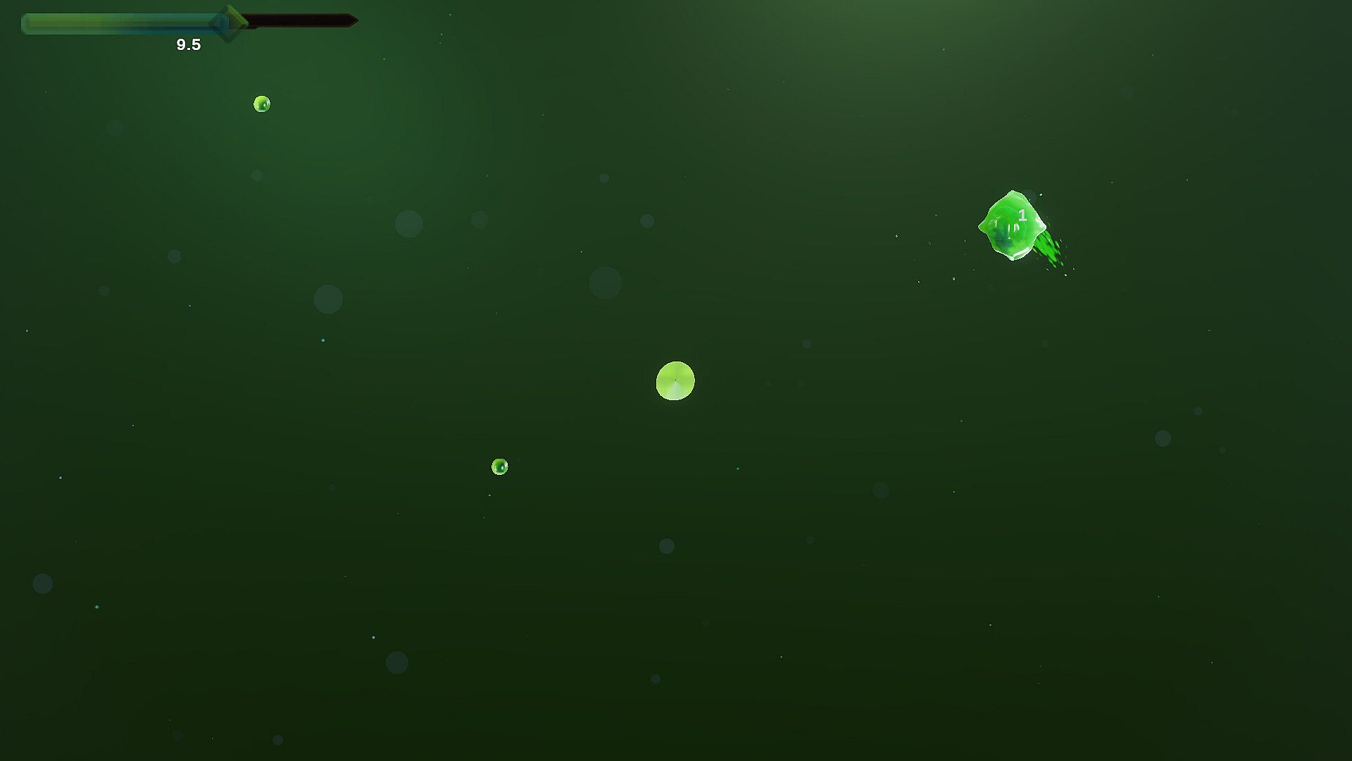 Move your slime with the mouse. Enemy slimes wander in from all sides. Your attack automatically damages anything touching you, but be careful because they hit right back! Kill enemies to release essence orbs that fly to your slime pool at the center. Survive each round, then spend your essence on powerful upgrades.