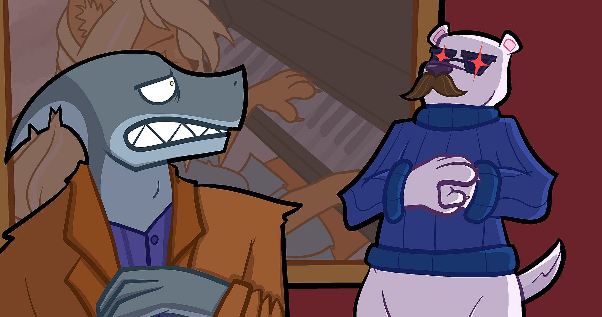 • Veda is a stylish axolotl who was a fashion designer before turning to a life of crime. She loved to win, and when she got second place, she lost it, stealing both the prize money and the winning dress.