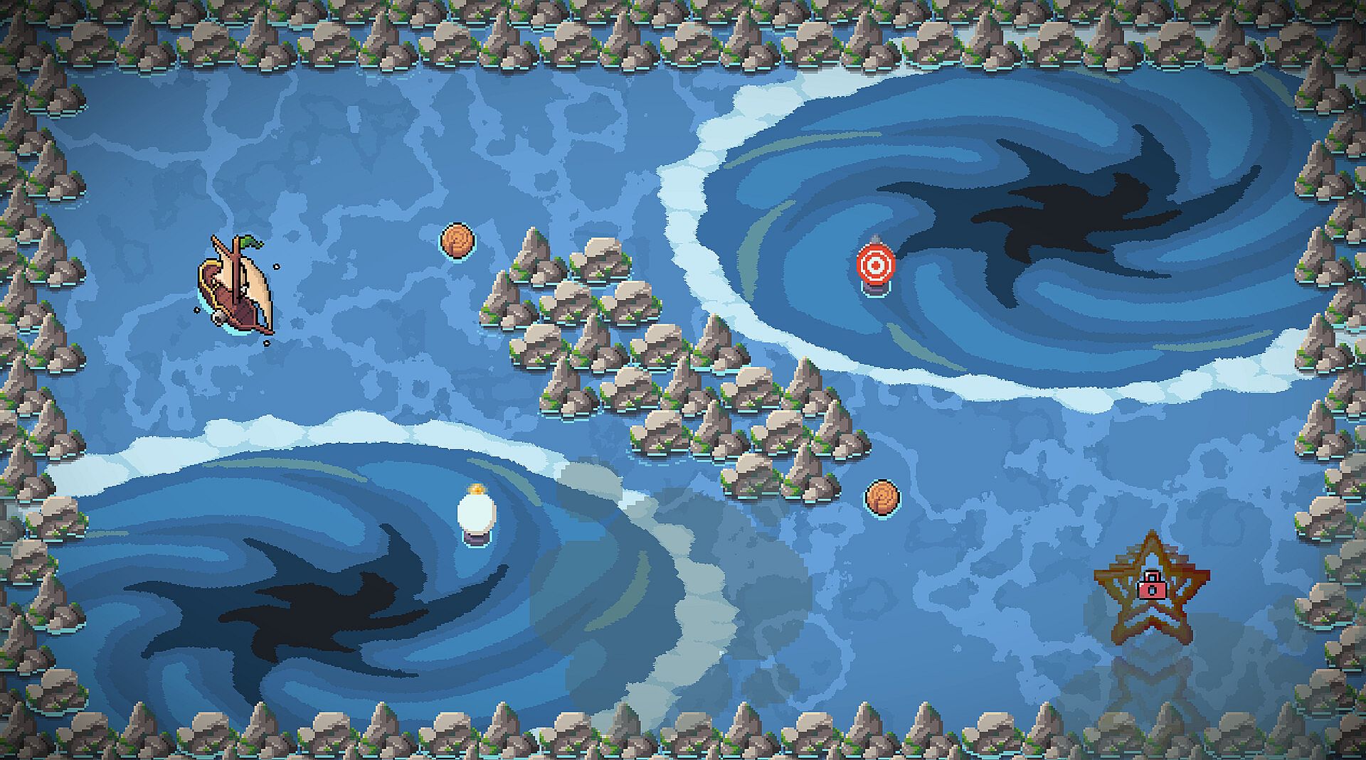Take advantage of lasso hooks to take turns too sharp for your ship to steer on its own. LASSO AT THE READY!