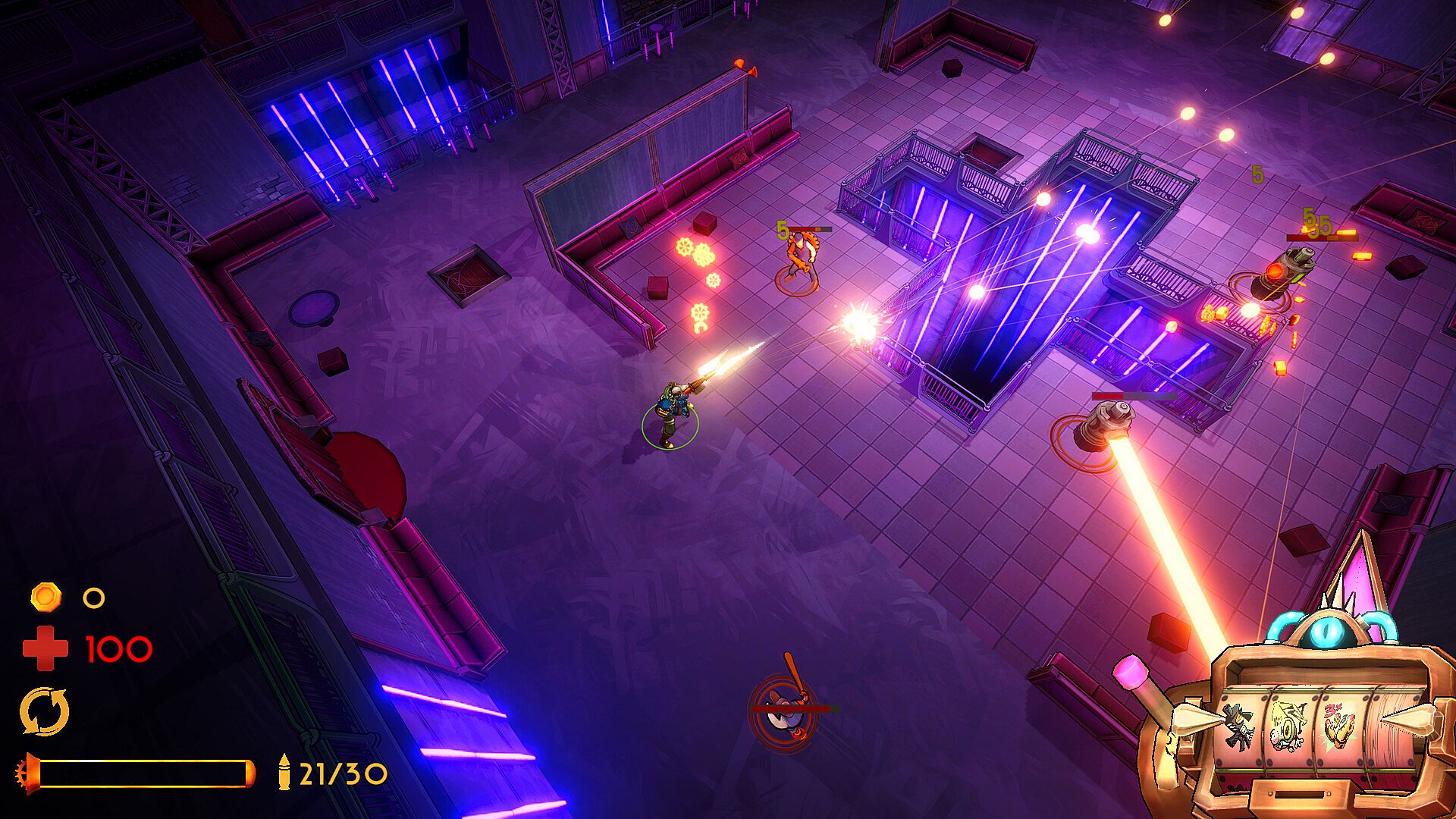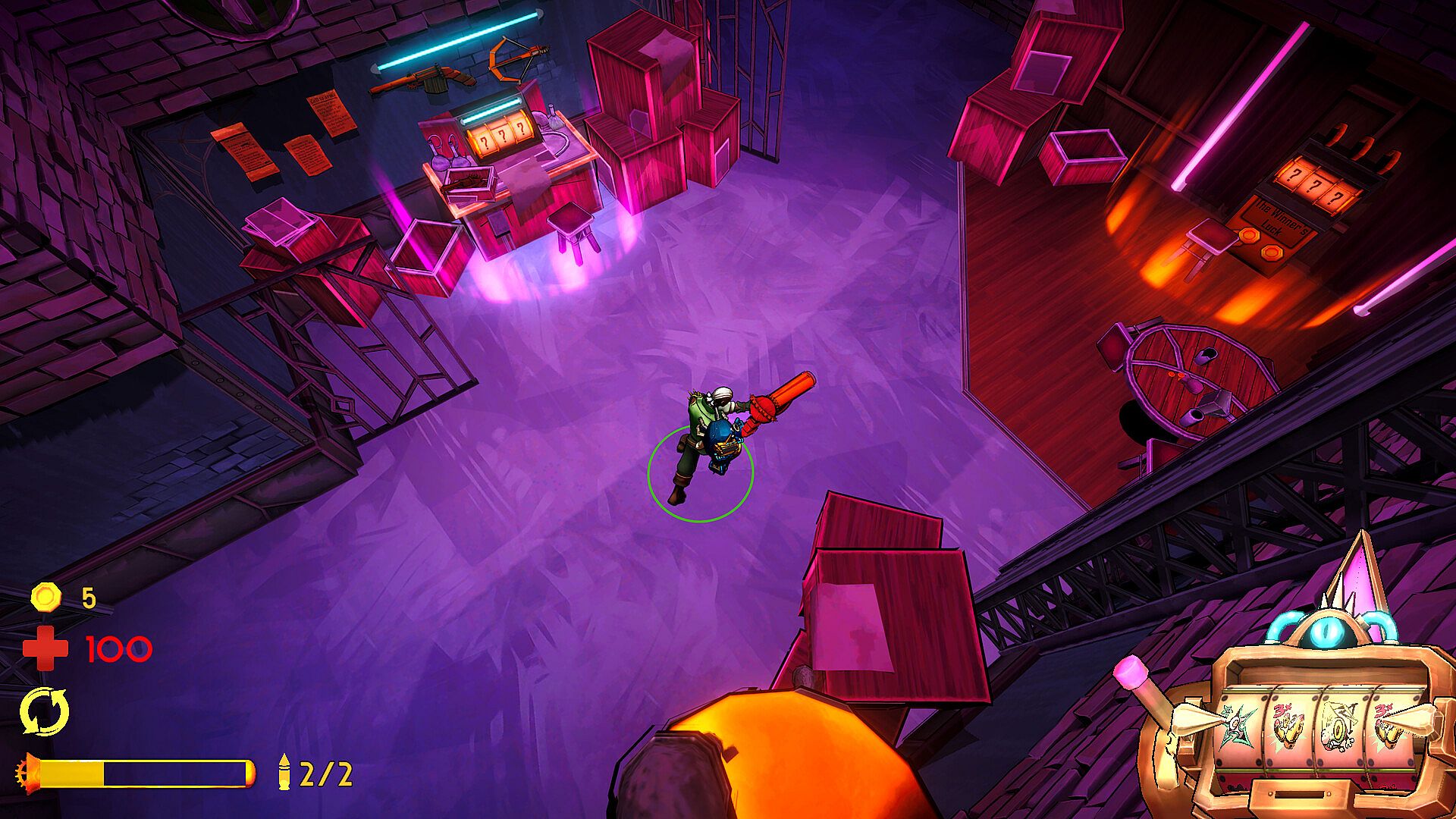 With more than 1000+ combinations, build your slot machine using tons of weapons and effects, all synergizing with each other, and unleash new game breaking combinations to shoot your way through enemies and bosses !