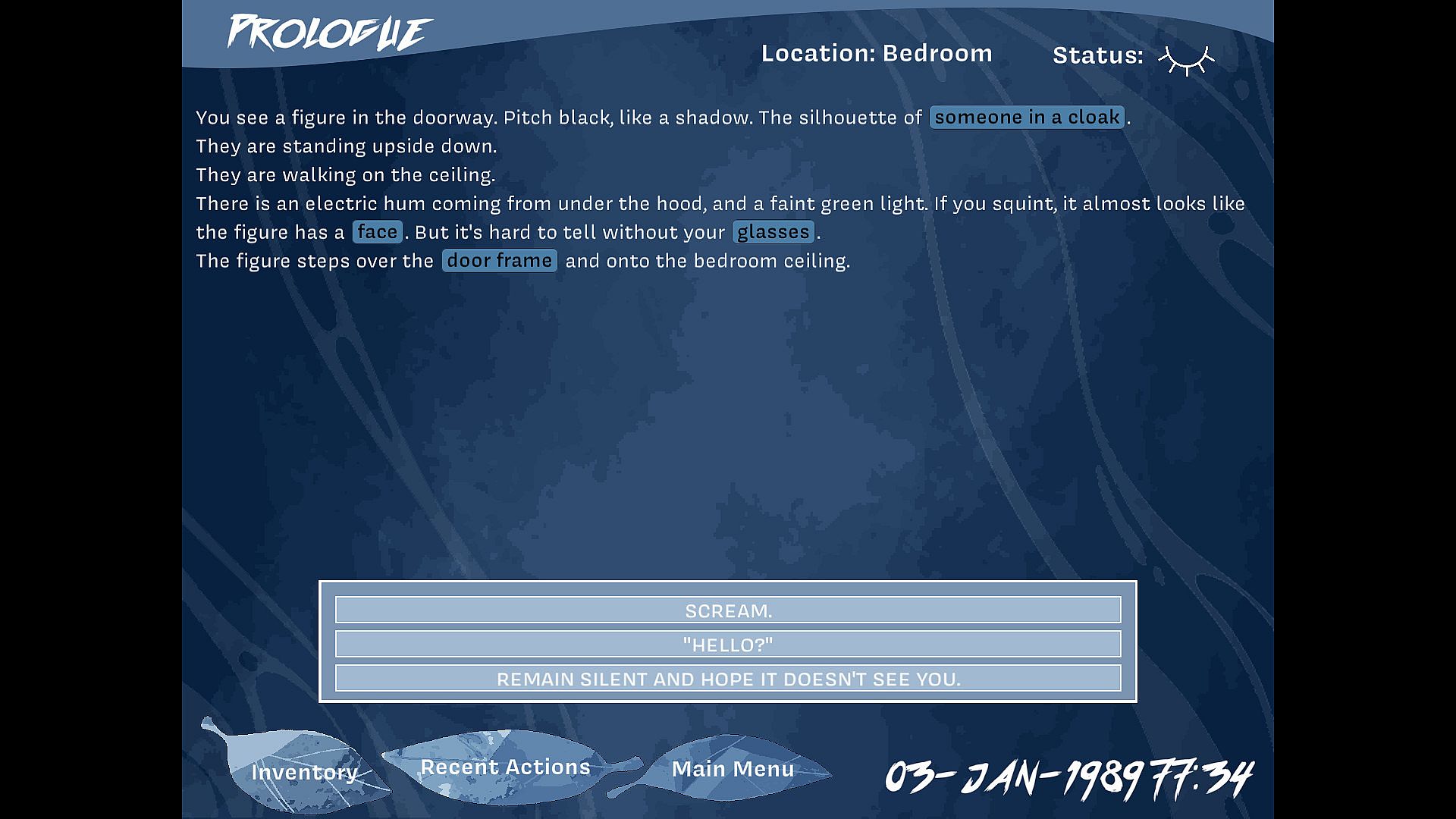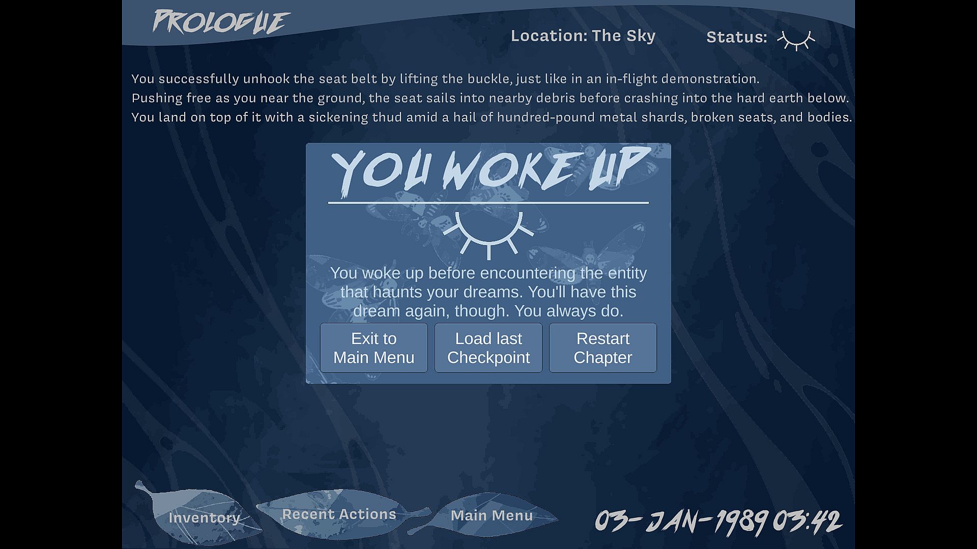 Play as a recently-widowed paramedic mom battling a mean case of sleep paralysis. When you're not trying to hold your waking life together, you're navigating surreal dreams of unspeakable beauty and endless possibilities that always seem to end in tragedy. All the while, a hooded figure stalks you. Collect clues to discover who they are and what they want.
