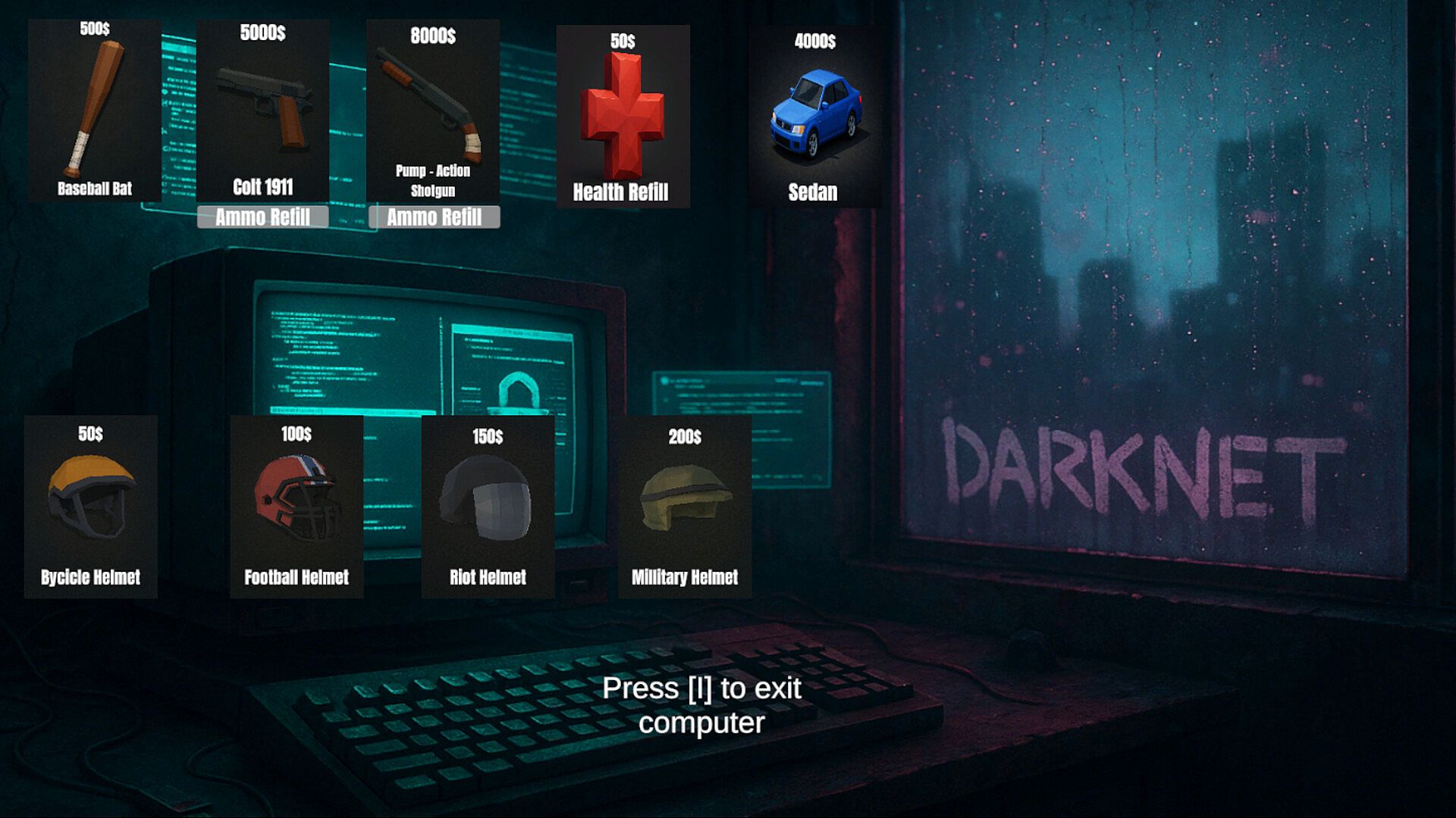 Use cash to buy weapons, vehicle, ammo/health refills and of course- to win the game by paying off your debt.